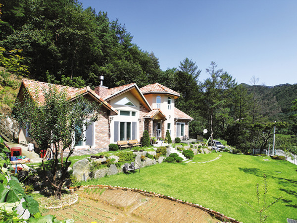 38년간의 직장 생활을 끝내고, 양평으로 귀촌한 건축주 부부. 서울에서 1시간 거리지만, 마을 깊숙이 들어와 앉은 주택 단지는 한가로운 시골풍경을 그대로 간직하고 있다. 집 안팎을 가꾸고, 5일장 다니는 재미에 푹 빠져 사는 이들의 전원생활을 엿본다. 취재 이세정 사진 변종석 ▲ 가로로 길게 이어진 동선 덕분에 전면폭이 21m에 달한다. 단층집이지만 규모 있는 저택같은 인상을 풍긴다.건축주 부부는 퇴직을 앞둔 5년 전, 전원생활을 위한 필지를 미리 마련해 두었다. 서울에서도 주택 생활을 했던 터라 더 넓은 마당을 가꾸고 싶었고, 나중에 자녀들에게 쉼터 역할도 할 수 있는 전원주택을 짓고자 했기 때문이다. 그 꿈을 이뤘다. 설계와 건축을 별 탈 없이 마무리하고 지금은 잔디와 텃밭을 꾸리고 강아지도 키우는, 본격적인 귀촌 생활을 만끽하고 있다. ▲ 정원 외에 앞마당에는 앵두, 매실 등의 유실수를 심고 텃밭도 멋지게 조성했다. ▲ 별채는 데크와 계단으로 이어진 넓은 테라스를 갖는다. 따로 오가는 출입문을 내어 독립성을 꾀했다. ◀ 부부의 침실은 단아한 서까래 장식과 벽지 사용으로 아늑하게 꾸몄다.▶ 벽난로가 있는 거실 풍경. 고라니나 멧돼지 출몰을 대비해 CCTV 모니터가 설치되어 있다. 암반이 많은 대지, 그 위에 지은 단층집 단지는 양평군에 속해 있지만, 강원도와 경계면에 위치해 산세가 좋고 호젓하다. 집터 뒤로 바로 육중한 돌산이 이어져 가끔 고라니나 멧돼지가 출몰할 정도다. 기초공사를 위해 터파기 작업을 하던 중에는 2m 아래 암반을 만나기도 했다. 더 이상 공사가 불가능해 성토를 하는 쪽으로 방향을 잡았다. 암반 높이에 맞춰 주택이 앉을 위치를 잡고 마당은 단차와 경사를 주어 조성했다. 부부가 단층집을 원했기 때문에 대신 계단과 데크를 부각시켜 집을 웅장하게 만들었다. 또한 단층집이라 다소 왜소해 보일 수 있어 동선을 최대한 가로로 배치하고, 외장재는 무게감 있는 재료로 선택했다. 지붕에 기와를 얹고, 외벽은 벽돌과 테라코타를 시공해 아늑하고 고풍스러운 분위기를 살렸다.부부의 주생활 공간과 자녀들을 위한 별채는 횡방향으로 연결되었다. 가로 동선 덕분에 전면의 폭이 21m에 달한다. 별채 가운데는 팔각이 돋보이는 2층을 살려 포인트를 주고 리드미컬한 지붕선을 만들었다. “직장 생활에 지친 자녀들이 찾아와 아무 방해받지 않고 편히 쉬다 갈 수 있는 공간을 만들고 싶었어요. 대를 이어 집을 이런 용도로 활용한다면 좋겠죠. 그런 생각으로 조금 더 오래가고, 더 친환경적인 자재를 사용하고자 했습니다.” 자녀를 생각하는 부모의 진한 마음이 주택 곳곳에 배었다. ◀비슷한 톤의 기와와 벽돌을 선택한 입면. 집을 에워싼 산세가 한눈에 들어온다.▶ 팔각의 2층방은 가끔 오는 자녀들을 위한 색깔있는 쉼터다. 이웃들과 함께 하는 즐거운 전원생활 실내는 거실이 비교적 높다보니 주방 위에 벽이 하나 생겼다. 정수옥 씨는 바닥재에서 아이디어를 얻어 포인트월을 만들어 심플하면서 목가적인 인테리어를 완성했다. 또한 침실은 부부의 연령에 맞추어 고풍스럽게 꾸미고 목재 서까래로 전원주택의 풍미를 한껏 살렸다.반면, 별채는 심플하고 안락하게 구성했다. 마치 펜션에 놀러온 듯, 거실과 주방을 개방감 있게 만들고 바깥 데크로 바로 이어지도록 동선을 계획했다. 팔각의 다락방은 독특한 천장으로 동화 속 나라에 온 듯한 풍경을 선사한다. 한겨울에는 벽난로의 운치를 즐기며, 난방비까지 절약하는 효과를 경험했다. “참나무 세 덩이만 넣으면 밤새 기름보일러가 작동하지 않을 정도로 훈훈해져요. 목조주택을 제대로 지어 단열성능을 보장받은 것 같아요. 각 단계마다 시공사와 함께 꼼꼼히 감리하고 체크한 결과 덕분이죠.” 부부는 이사를 와서 마을 사람들을 초대해 집들이를 했다. 동네에 띄엄띄엄 있는 집이지만, 한 자리에 모이니 그 수가 50여명에 달했다고. 이웃에게 선물 받은 솟대와 새집이, 마당에서 묵묵히 부부의 전원생활을 응원하고 있었다. 우리 집에만 있는 KEY POINT! 서울에서도 오랫동안 단독주택 생활을 해 온 부부. 그간 좁은 마당으로 늘 아쉬웠는데, 이곳에서는 집 안팎을 가꾸다보면 하루해가 다 간다. 마당 곳곳에 유실수와 야생화 등을 나누어 심고 정원 한켠에 텃밭을 일구는 데도 일가견이 있다. ◀ 고목에 매달린 빨간 우체통 주변에 벌채목이나 부러진 나무 둥치를 주어다 화분대나 울타리 등 적재적소에 활용한다. 집으로 들어가는 입구에는 빨간 우체통을 낮게 달고, 화분을 올려 손님을 맞는다. ■ 텃밭 경계석은 꽃잔디 벽돌 잔디 마당과 텃밭을 자연스러운 곡선으로 나누고, 경계는 집을 짓고 남은 벽돌을 쌓아 구획했다. 부부는 벽돌 구멍에 꽃잔디를 심어 텃밭과 정원을 한데 어우러지도록 했다. ▶ 벌개미취가 피어난 길 입구 집으로 오르는 마을길에는 우리나라에서만 자란다는 벌개미취를 심어 그 꽃이 한창이다. 내 집만 꾸미는 것이 아니라, 오가는 사람 모두 즐길 수 있도록 한 부부의 깊은 배려가 느껴진다. HOUSE PLAN 대지위치 : 경기도 양평군 대지면적 : 998㎡ 건물규모 : 지상 2층 건축면적 : 154.16㎡ 연면적 : 172.