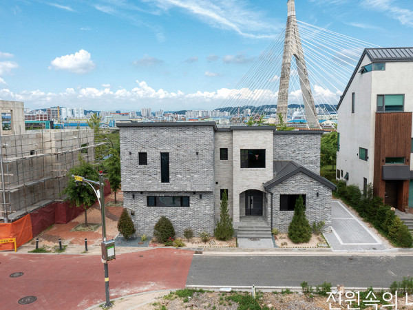 모든 침실에는 윈도 시트를 두어 공간 안에 쉼을 위한 공간을 마련했다.많은 것이 멈추거나 제약되는 부자유한 시기.마당에 대한 바람과 주택의 여유를 찾아, 알찬 패시브 집을 지었다.사람의 이동이 뜸해지고, 서로 간 거리가 멀어졌다. 사람끼리 가까이하는 게 위험한 시대가 됐다. 그렇게 코로나19는 많은 이들의 일상을 바꿔놓았다. 건축주 김원일, 한은정 씨 가족도 예외는 아니었다. 캠핑을 즐겨 자주 자연으로 떠나 힐링해왔지만, 코로나는 온 가족의 발을 묶었다. 1년 간은 아파트 놀이터조차 마음 편히 나가지 못했고, 한창 뛰어놀 두 아이와 부부는 점점 지쳐갔다.방을 걷어내고 주방과 거실, 손님 화장실만을 담아낸 1층. 덕분에 주방은 아일랜드와 미니 바로 더 여유롭게 쓰고, 아이들도 집안일이 누구만의 일이 아닌 가족 모두가 해야 할 일임을 자연스럽게 배운다.SECTION1.현관 2.주방·식당 3.거실 4.가족실 5.침실 6.메인침실 7.드레스룸 8.파우더룸 9.화장실 10.욕실 11.보조주방 12.세탁실 13.창고 14.보일러실 15.다락 16.차고 17.테라스 18.발코니“앞으로도 이런 생활이 장차 ‘뉴노멀’이 되겠다 싶었습니다. 더이상 지치지 않도록 오랫동안 생각했던 집짓기를 시작할 때라고 봤죠. 이런 생각은 저만 하는 게 아닌지, 집 지으면서도 많은 분이 물어보시더라고요.”해가 강하게 내리쬐는 남향과 큰 창 위주로 외부 전동블라인드(EVB)를 설치해줬다(회색 눈썹 모양의 창).HOUSE PLAN대지위치 ≫전라북도 전주시 대지면적 ≫277.4㎡(83.91평) 건물규모 ≫지상 2층 + 다락 거주인원 ≫4명(부부 + 자녀 2) 건축면적 ≫110.74㎡(33.49평) 연면적 ≫193.52㎡(58.53평) 건폐율 ≫39.92% 용적률 ≫61.56% 주차대수 ≫1대 최고높이 ≫10.16m 구조 ≫기초 - 철근콘크리트 매트기초 / 지상 –외벽 : 2×6, 지붕 : 2×12 구조목 단열재 ≫외벽 - 미트하임 투습형 타공 단열재 150T / 내벽 - 셀룰로우스 단열재 140mm, 285mm(지붕) 외부마감재 ≫벽 - 두라스택 S시리즈 (탱고레드) / 지붕 – 알루미늄징크 창호재 ≫살라만더 82mm pvc 독일식 시스템창호(U=0.8W/m2k), 47mm 삼중유리(로이코팅) 철물하드웨어 ≫심슨스트롱타이 열회수환기장치 ≫독일 시스템에어 SaveVTR_3000L 에너지원 ≫도시가스 조경 ≫건축주 직영 전기·기계 ≫예지전기 설비 ≫명제설비구조설계(내진) ≫엠구조설계 감리 ≫세성건축사사무소 설계·시공 ≫필로디자인건축 02-422-4016www.design-philo.com지금은 비어 있지만, 나중에 주택이 지어질 것을 생각해 서측으로는 채광 이상으로 큰 창을 두지 않았다.잡지와 인터넷을 무수히 오간 끝에 필로디자인건축 이성호 소장을 만났다. 디자인과 함께 패시브하우스 주택 성능을 갖췄으면 했던 가족에게 이 소장이 보여온 포트폴리오는 그 꿈을 미리 보는 듯했다. 다만, 설계부터 입주까지 주어진 기간은 약 7개월. 저에너지 주택 건축으로서는 상당히 타이트한 일정이었지만, 다행히 일정에 제법 순풍이 불어줬던 덕에 가족은 붉은 벽돌로 감싼, 마당 있는 집을 만날 수 있었다.많은 주택들이 주택단지 규정을 짐작해 담장을 설치하지 않았지만, 면밀히 검토한 결과 설치가 가능해 큰 길가로 설치했다.주택은 앞뒤로 도로를 면하는 잘 다듬어진 필지에 ‘ㄱ’자로 앉혀졌다. 한정된 면적과 건축 규정에 부합하면서도 가족만의 프라이빗한 마당을 만들기 위해 최대한 넓게 구성한 결과였다. 매스는 모던한 디자인과 주택의 에너지 성능 재고를 위해 담백하게 조형되었다. 하지만, 지루하기보다는 다양한 크기의 창과 길고 붉은 벽돌의 질감이 입면에 재밌는 표정을 만든다.차고는 현관과 바로 이어져 외출과 귀가에 편의를 더했다.현관과 차고는 주택의 북쪽 면에 놓였다. 생활공간보다 조금 낮은 레벨로 자리한 차고는 남편 원일 씨의 위시리스트 중 하나로, 단순히 주차 역할 이상으로 간단한 정비와 취미활동을 겸할 수 있도록 넉넉하게 놓았다. 차고에서는 마당과 실내로 드나들 수 있는 출입구가 각각 있어 마당 활동의 서포트에도, 날씨에 구애받지 않고 차량을 이용하는 데에도 요긴하다.거실과 식당, 주방 모습. 마당으로 난 큰 창 옆에 걸린 그림은 은정 씨가 큰 틀에서 그리고 가족 모두가 조금씩 더해 완성한 작품이라고.모든 침실이 놓인 2층 가족실 모습. 방은 나뉘어 있지만, 방에서 나오면 바로 얼굴을 마주할 수 있다.실내는 우드와 화이트를 바탕으로, 공적 영역과 사적 영역을 층별로 나눠 실을 배치했다. 미국에서 얼마간 지냈던 부부의 경험을 녹여낸 것으로, 손님을 맞이하는 거실과 식당과 같은 공간은 1층에 뒀고, 모든 침실은 2층으로 올렸다. 덕분에 주차장을 뺀 바닥면적이 약 25평 정도로 크지 않지만, 1층은 안마당과 함께 상당히 넓게 트인 느낌을 준다.모든 침실에는 윈도 시트를 두어 공간 안에 쉼을 위한 공간을 마련했다.2층에는 부부와 두 아이의 방, 그리고 욕실 구역이 가운데 가족실을 두고 둘러싸듯 놓였다. 가족실은 지붕선까지 천장을 오픈해 놀이 공간 겸 업무공간으로 쓰는 다락과의 소통 채널과 공간감을 부여하고자 했다. 가족실의 서측, 벽으로 공간을 구분해준 곳에는 화장실과 세면 공간, 욕실을 나누면서 한편으론 느슨하게 이어놓았다. 부