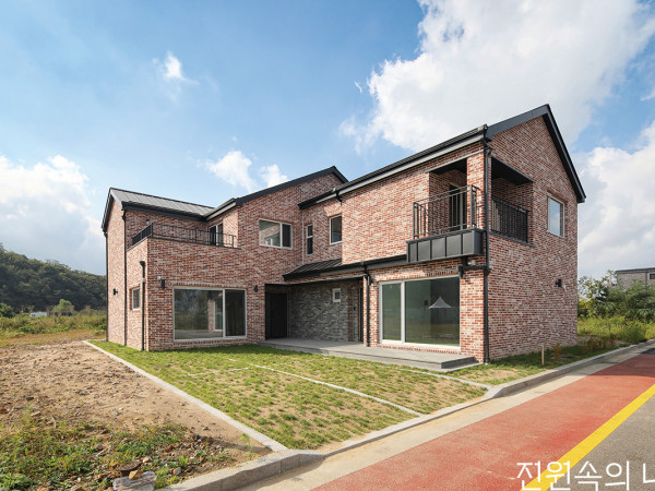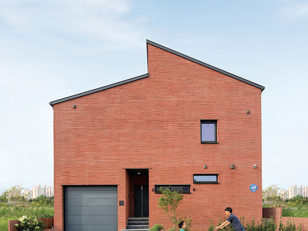 가족의 일상에 활력을 되찾아준 집짓기. 건축주와 임대 세대 모두 만족스러운 집에서 새로운 미래를 찾아냈다.경기도 화성시. 양옆으로 갈대밭이 무성한 길을 따라가다 보면 아직은 ‘무계획’한 계획 주택단지가 있다. 넓은 평야 속 채워져 가는 빈칸들처럼 띄엄띄엄 지어진 주택들 사이, 한눈에 들어오는 붉은 벽돌집이 보인다. 한 집 아래 두 세대를 품은 채 동향으로 입체적인 표정을 짓고 있는 건축주 정재용, 조남이 부부의 듀플렉스 주택이다.남쪽에서 바라본 주택의 배면. 침실, 다용도실, 세탁실마다 필요한 만큼의 창을 냈다.주택의 출입구는 다른 색상의 치장벽돌을 사용해 구분했다.필지 크기에 맞춰 두 개의 'ㄱ'자가 겹친 형태의 듀플렉스 주택이 되었다.은퇴 후 새로운 미래를 그려야 하는 시기. 그러나 오랜 도시 생활과 코로나19의 여파 때문이었을까. 가족들은 다소 지쳐 있었다. 저마다의 고민을 안고 있던 때, 가라앉았던 집안의 분위기를 환기시킨 건 다름 아닌 ‘집짓기’였다. 그 옛날 마당에서 손주들을 반기며 함께 놀아주시던 친정 부모님의 모습을 떠올리며, 더 먼 미래에는 자신도 그런 할머니가 되길 꿈꿨던 남이 씨였기에 전원주택 건축은 필연적이었다. 좋은 기회로 소유하게 된 송산 필지에 때마침 떨어진 건축허가까지, 갑자기 시동이 걸리기 시작했다.더스티그린 색상의 중문이 있는 현관과 신발장은 4인 가족에게 적합하도록 넓게 조성했다.생활의 동선을 가장 우선시한 건축주의 요청으로 거실은 최소한의 가구들과 벽면 선반으로만 구성했다. 창너머로 현무암 데크와 주차공간이 다 보인다. 나중에는 담장을 추가해볼 계획이라고.SECTION① 거실 ② 침실 ③ 부엌 ④ 화장실 ⑤ 다용도실 ⑥ 세탁실 ⑦ 다락 ⑧ 가족실 ⑨ 베란다 ⑩ 발코니 ⑪ 현관점차 살고 싶은 집의 윤곽이 잡혀가기 시작하며 목표가 정해지고 난 뒤부터 부부는 꽤 많은 발품을 팔았다. 이곳저곳 모델하우스 탐방은 물론 인터넷을 통해 자료 수집과 공부를 병행했다. 이 과정에서 하우스톡을 처음 알고 만나게 되었다. 사양을 꼼꼼하게 따지면서도, 신뢰감 있는 상담을 받으면서 마음이 기울었던 것이다. 본래는 필지를 모두 활용한 집을 지으려 했지만, 면적만 큰 집은 의미가 없다는 쪽으로 의견이 모여 임대세대가 있는 다가구주택으로 계획되었다. 필지가 넓지 않았기에 ‘ㄱ’자 형태를 둘로 나누는 듀플렉스 주택으로 임대세대가 주인세대보다는 다소 작지만, 두 세대가 각기 다른 방향의 테라스 공간을 덤으로 갖게 되었다.(위, 아래) 주방은 집 내부에서 유일하게 어두운 톤으로 구성됐다. 맞춤 가구와 기존 집에서 쓰이던 가구, 직접 고른 조명이 절묘한 조화를 이룬다.PLAN건축주 세대는 네 명의 가족 구성원이 살 집이기에, 각자의 공간은 각자가 구상하기로 결정했다. 쉽지 않을 거라는 걸 예상했지만 각자의 취향을 존중하고 공동의 일은 함께 논의하며 해나가는 가족의 오랜 분위기와 걸맞는 선택이었다. 가족은 꼼꼼하게 서로의 동선부터 논의하기 시작했다. 욕조가 있는 화장실은 두 딸이 생활하게 될 2층으로, 세탁실은 어디로 몸을 틀어도 넉넉할 정도로 여유롭게, 발코니가 향하는 방향까지. 집의 모든 것이 꾸준한 ‘가족회의’의 산물이다. 중간중간 갈등도 있었지만 각자의 취향을 가감 없이 말하며 조율할 수 있는 것은 서로를 존중하는 분위기, 그리고 남편 재용씨가 중간에서 가족 사이의 가교 역할을 해주었기 때문이라고.큰딸의 요청에 맞게 스킵플로어 식으로 구성된 침실. 골드 색상 조명이 포인트가 되면서 아늑한 분위기를 만든다.가족실은 또 하나의 거실 역할을 한다.HOUSE PALN대지위치 ≫경기도 화성시 대지면적 ≫312㎡(94.38평) 건물규모 ≫지상 2층 + 다락 거주인원 ≫4명(부부 + 자녀 2) 건축면적 ≫150.20㎡(45.43평) 연면적 ≫240.09㎡(72.62평) 건폐율 ≫48.14% 용적률 ≫76.95% 주차대수 ≫4대 최고높이 ≫8.08m 구조 ≫기초 – 철근콘크리트 매트 + 줄기초 / 지상 –경량목구조 외벽 2×6 구조목 + 내벽 S.P.F 구조목 / 지붕- 2×8 구조목 단열재 ≫그라스울 R37, 비드법보온판 2종1호, 1종2호, 1종3호 스카이텍 8T 외부마감재 ≫외벽 –치장벽돌 / 지붕 – 컬러강판 창호재 ≫게알란 독일식 시스템창호 47mm 에너지원 ≫도시가스 전기·기계 ≫㈜부경전기 설비 ≫㈜원주설비 구조설계(내진) ≫마루엔지니어링 감리 ≫YH건축사사무소 시공·설계 ≫HT종합건설(하우스톡) 1588-9704 www.house-talk.co.kr남이 씨의 생활공간에 두 딸이 그린 각자의 방까지. 사실상 한 집에 여러 명의 클라이언트가 있는 것이나 마찬가지였다. 이 과정에서 하우스톡의 피드백이 돋보였다. 최대한 의견을 수용하고 배려하면서도, 건축적으로 무리가 있는 부분이나 장기적으로 봤을 때 불편한 요소들은 놓치지 않고 수정을 제안했다. 이런 꼼꼼한 설계 시공 과정에서 건축주 부부는 한 번 더 하우스톡에 대한 신뢰를 느꼈다. 해외에 나가게 된 작은 딸의 방 구성을 논의하던 도중에는 영상통화로 인테리어 자재의 색상을 확인시키며 선택을 돕기도 했다. 본인의 방이니 직접 골라야 나중에 후회가 없다는 건축주 가족들의 의견을 존중해준 것이다.작은딸의 