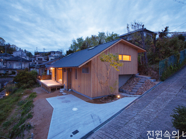 다양한 세계 주택 만나보기 16탄산 중턱 앉혀진 2층 목조주택. 가파른 경사지에 집을 짓는 것은 도전에 가까운 선택이었다. 더불어 건축주의 요구를 맞추기 위해 과감하게 각 공간의 레벨을 달리 적용하였다.일본 나라(Nara)현의 히가시이코마(Higashi-ikoma). 산과 언덕으로 둘러싸인 지역으로 곳곳에 울창한 삼림이 잘 보존되었다. 청정한 자연환경으로 인해 주변에 고급주택 단지 개발이 이어지고 있는 상황이다. 작년에 신축한 목조주택은 인근 개발지에서 비켜나 좁은 도로를 따라 한참을 올라가야 하는 중간 언덕쯤에 위치하였다. 부지 면적은 274.59m2으로 집을 짓기에 다소 협소한 크기였지만, 무엇보다도 가파른 경사지라 누구나 쓸모없는 땅으로 여겼던 곳이었다.외부는 물론 내부에도 삼나무가 주로 쓰인 목조주택의 연면적은 112.61m2이다. 외부에서 언뜻 보기에는 단층처럼 보이지만, 정작 내부는 다락 형태의 2층을 품고 있다. 평소에 야외활동을 즐기는 건축주는 설계에 관한 요청 사항이 단순 명료했다. 전망대처럼 외부를 조망할 수 있는 데크와 침실로 사용할 단출한 다락방이 전부였다.절토와 성토 대신 있는 그대로의 경사지를 활용해 집을 앉혔다.건축주의 요구사항 중 첫 번째였던 데크에서 마을 풍경을 두루 감상할 수 있다.HOUSE PLAN프로젝트명 ≫Sou 위치 ≫nara, higashi-ikoma, japan 대지면적 ≫274.59m2 연면적 ≫112.61m2구조 ≫two-story wooden 완공연도 ≫2020. 4. 사진 ≫Atelier Thu 시공 ≫Yamamotoyasu koumuten(yamayasu), Masahito Yamamoto 설계 ≫Atelier Thu https://thu-architect.com건축가 ≫Asuka Tsuboi, Takahiro Hosogai, Satoshi Ueda1층 레벨에 비해 낮게 들어선 주방 공간. 통풍이 잘 되도록 뒤로 창을 배치하였다.천창을 설치한 계단실.외부에서 보기에 단층처럼 보이지만 내부는 2층 공간으로 구분된다.건축주가 희망한 서재 공간. 앞뒤 창에 주변 자연 풍경이 걸린다.절토와 성토를 배제한 그대로의 경사지 활용건축주 요구에 맞추기 위해서는 우선 불리한 대지 조건을 극복할 건축 프로그램이 필요했다. 원래의 지형 흐름을 그대로 살린 경사지 주택 계획에서 출발하였다. 이왕이면 절토와 성토를 지양하고 주위 자연환경에 피해를 최소화하고자 함이었다. 나아가 각각의 주거 기능과 2층 볼륨을 확보하기 위해 실별로 높이를 조정하면서 디테일을 풀어나갔다. 이를 위해 건축가는 높낮이가 다른 5가지 지형에 공간을 배치했다. 특히나 경사지라는 환경적인 특수성에 주목해 주거공간과 어떻게 조화를 시킬 것인지가 관건이었다. 일단 경사면의 방향과 전망이 중요했다. 다행히 앞을 바라보는 쪽이 남향인 가운데 경사 방향과 조망의 일치, 햇빛의 양 등이 검토되었다. 같은 주택이라도 경사지에 위치한 집이 평지에 비해 집 안으로 빛이 깊숙이 들어 일조량이 많기 때문이다.내부에 들어서 아래위층을 돌고 보면 각 공간별로 레벨을 달리한 공간적인 특성을 확연히 느낄 수 있다. 2층 서재 공간에 앉으면 앞뒤로 녹지를 바라볼 수 있어 마치 산비탈에 앉아 있는 듯한 느낌이다. 식당과 이어지는 주방 창문을 열면 언덕에서 기분 좋은 바람이 불어오고, 아침이면 새들의 지저귐이 가득하다.PROJECT INFO프로젝트명 ≫Sou 위치 ≫nara, higashi-ikoma, japan 대지면적 ≫274.59m2 연면적 ≫112.61m2 구조 ≫two-story wooden 완공연도 ≫2020. 4. 사진 ≫Atelier Thu 시공 ≫Yamamotoyasu koumuten(yamayasu), Masahito Yamamoto 설계 ≫Atelier Thu https://thu-architect.com건축가 ≫Asuka Tsuboi, Takahiro Hosogai, Satoshi Ueda경사지에다 자연 훼손을 최대한 줄이기 위한 설계를 계획하다 보니 장방형의 대지 형태에서 반을 기점으로 공간을 나누었다.서까래가 내부에 노출되는 형태로 마감하였다. 지붕 천창을 별도로 설치하여 환기와 자연조명 확보에 신경 썼다.중간 언덕 위 경사지에 들어선 목조주택. 협소한 부지 면적에 가파른 경사지라 주택을 앉히기에 좋은 조건은 아니었으나, 레벨을 달리한 접근으로 연면적 112.61m2의 2층 주택이 탄생하였다.건축가 _Asuka Tsuboi, Takahiro Hosogai, Satoshi Ueda일본 오사카 공과대학 건축학과를 2010년에 졸업한 젊은 건축가들이다. 같은 시대를 함께한 동창생으로 서로 다른 환경에서 자라 대학에서 만났고, 각자 활동하다가 하나의 건축 지향점으로 건축사사무소를 열었다. 건축주는 취향, 기능, 비용, 공간, 부지환경 등에 대해 아주 다양한 생각을 가지게 되는데, 그 동떨어진 각 개념을 건축적으로 일관되게 풀어내는 데 주력하고 있다.취재_이준희ⓒ 월간 전원속의 내집 / Vol.270 www.uujj.co.kr월간 <전원속의 내집>의 기사 저작권은 (주)주택문화사에 있습니다. 무단전재, 복사, 배포는 저작권법에 위배되오니 자제해주시기 바랍니다.