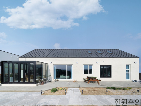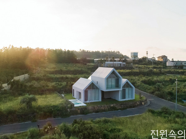 평범한 일상 속 새로운 경험을 만들어주는 마음 한구석에 남을 장소. 집을 짓기 전 가볼 만한 숙소, 그 다섯 번째는 제주시 청수리에 위치한 ‘오오오하우스’다.단순한 디자인의 외관은 외부 벽체와 박공지붕 면이 그대로 이어지는 부분이 특히 인상적이다. 제주도의 강수량과 일조량을 견딜 수 있으면서도 관리가 어렵지 않은 시공 디테일을 구현하는 일이 녹록지 않았다는 후문.하늘에서 바라본 오오오하우스. 각 매스의 돌출 정도를 달리해 다양한 외부공간이 생겨났다.제주도 곶자왈과 한라산이 보이는 동네, 청수리. 여기에 세 채의 박공지붕 집이 하나로 합쳐진 ‘오오오하우스(OOOHOUSE)’가 있다. 싱그러운 자연 속 새하얗게 존재감을 드러내는 이곳은 오랜 친구인 두 가족과 새로 찾아올 한 가족을 위한, 세 가족의 집이다.오오오하우스에 사는 두 가족은 어린 자녀가 있는 30대 후반의 부부들이다. 남편들은 서울에서 직장에 다니고, 주말이면 아내와 자녀가 있는 제주집으로 간다. 아이가 하나 또는 둘 있는 두 가족은 꼭 필요한 공간만 둔 미니멀한 집을 원했고, 제주로 여행 온 가족에게 내어줄 집 한 채를 더 두었으면 했다. 경사지를 따라 각자의 높이로 나눠진 땅은 잘 정비된 도로와 경사를 따라 지어진 집들의 풍경이 아름다운 곳이었다. 이 작은 대지 안에 세 가족의 집을 그려 나가는 일은 서로 다른 삶의 속도를 읽어가는 데서 시작되었다.깔끔하게 꾸며진 오오오하우스 실내오오오하우스의 모든 동은 높은 박공지붕 선을 드러내고 화이트를 기본으로 미니멀하게 연출했다. 2층의 ooo house에는 온실과 연결된 주방을 11자 구조로 두었다.내외부 모두 간결한 디자인의 오오오하우스는 세 채의 집이 이어진 듯하지만 높이 차이를 두어 적절한 거리를 둔다. 1층의 o house와 oo house에는 두 가족이 살고, 2층의 ooo house를 여행 온 가족에게 내어주는 형태다. 모든 집은 방의 구분 없이 시원하게 펼쳐진 공간 안에 주방과 거실, 침실을 구성했다. 그리고 집마다 다른 속도를 담았는데, 작은 정원과 이어지는 o house는 주방과 거실 가구에 나무 소재를 사용해 한결 아늑한 분위기다. 또 다른 가족의 집 oo house에는 청량감 넘치는 야외 수영장이 있고, 날마다 새로운 가족을 맞이하는 ooo house에는 햇살 가득한 유리 온실을 두었다.oo house의 옥상 테라스. 오랜 친구인 건축주 아내들은 제주의 푸르름을 간직하고 싶어 집 안 곳곳에 작은 화분을 키우는 걸 좋아한다고.o house 건물 옆에는 아이들이 좋아하는 작은 수영장을 두었다. 내부 욕실-현관문-수영장 동선을 연결해 편의성을 더했다.도로에서 바라본 건물의 후면. 어둠이 내리면, ooo house의 온실 너머로 따뜻한 빛이 새어 나온다.이곳을 찾은 이들에게는 직접 만들어볼 수 있는 ‘레시피 박스’를 준비해준다. 두 가족의 일상이 담긴 레시피 노트와 제주에서 자란 제철 재료들을 담은 상자다. 건강한 한 끼를 만들고 나누면서 잠시나마 이 시간과 공간에 온전히 집중하길 바라는 마음도 담겨 있다.따뜻한 온실에 앉아 푸르름을 바라보며 사색하고, 오래된 필름 카메라로 소중한 순간들을 기록하는 일상. 조금은 느린 속도로, 삶의 반짝이는 것들을 발견하고 나누며 또 다른 시선으로 하루를 마주하기를. 오오오하우스에선 그렇게 또 하나의 가족이 생겨난다.o house의 거실 및 주방 전경. 온기를 품은 나무 소재의 주방가구와 소파가 따스한 분위기를 풍긴다.ooo house에는 o house의 지붕 공간을 활용해 이동식 욕조가 있는 야외 테라스를 마련했다. 지붕 면에 창을 내어 제주의 바람을 느낄 수 있다.HOUSE PLAN대지위치≫ 제주특별자치도 제주시대지면적≫ 465m2(140.66평)건물규모≫ 지상 2층건축면적≫ 150.93m2(45.66평) | 연면적≫212.85m2(64.39평)건폐율≫ 32.46% |용적률≫45.77%주차대수≫ 3대외부마감재≫ 드라이비트내부마감재≫벽- 도장 / 바닥- 콘플로어욕실 및 주방 타일≫ 벽·바닥 – 콘플로어수전 등 욕실기기≫ 콘크리트 제작 세면대, 레진 욕조, 아메리칸스탠다드 양변기주방가구≫ 콘크리트 상판, 목공 하부장 자체제작조명≫필립스 매입등, Oluce 플로어스탠드현관문≫ 필로브 | 방문≫현장 제작붙박이장≫MDF 위 도장 현장제작구조설계(내진)≫ 미래SDG조경·설계·시공·감리≫이룩(2LOOK) 070-8682-0255 http://2look.co.kr2층의 주방과 연결되는 온실침실 공간 옆 욕실 위에 작은 다락을 둔 ooo house.INTERVIEW / 오오오하우스의 두 가족두 가족이 함께 집을 지은 계기는우리는 어린 시절부터 친구 사이입니다. 따뜻한 물이 담긴 작은 욕조에서 머리만 빼꼼 내밀고 수다 떨기를 좋아했고, 기분이 울적할 땐 어른들 몰래 비밀 다락에서 키득거리며 만화책을 읽고 군것질을 하곤 했지요. 그러던 우리가 어느새 어른이 되어 마음의 의지가 되는 좋은 ‘가족’이 되었어요. 함께 제주로 이주하며 그동안 육아에 치여 잊고 있던 것들에 대해 같이 고민하고 나누게 되었고, 우리 두 가족을 위한 집을 꾸리게 되었습니다. 이곳은 저희의 어린 시절 추억과 마음을 담은 아지트입니다. 내가 하고 싶은 것, 좋아하는 것, 함께하는 시간이 오롯이 담긴 곳이에요.유년 시절부터 친하게 지내온 아내들은 이제 이웃이자 가족