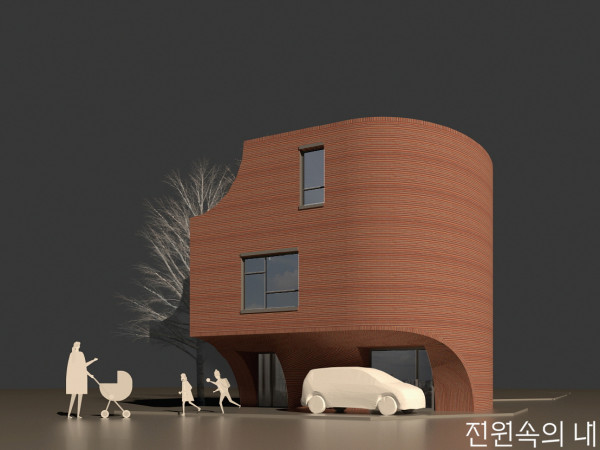 모퉁이땅 둥근집건축설계는 계획설계, 기본설계, 실시설계로 이어진다. 대지 여건을 고려한 배치부터 공간의 풍성함을 결정짓는 단면, 세대수와 가족의 취향을 반영하는 평면 계획 단계에서 건축가의 다양한 아이디어를 엿보는 기회를 가져본다.HOUSE PLAN대지위치≫ 서울시 광진구지역지구≫ 제1종일반주거지역대지면적≫ 83.5㎡(25.25평) │건물규모≫ 지상 3층 │건축면적≫ 48.4㎡(14.64평)건폐율≫ 계획 58%(법정 60%) │용적률≫ 계획 142%(법정 150%)최고높이≫ 9.3m │구조≫ 철근콘크리트외부마감재≫ 벽돌디자인팀≫ 이상우, 이지나SITE서울 광진구에 위치한 대지는 3면이 도로에 접하고 있다. 건축법을 적용하고 나면 대지면적의 약 30%는 도로에 편입되고 이후 육각형으로 생긴 대지만 남게 된다.FAMILY젊은 부부를 위한 단독주택이다. 건축주는 재택근무가 가능한 사무실(서재)을 1층에 배치하고, 외부공간을 느낄 수 있는 넓은 발코니를 원했다.INTERIOR재택근무가 가능한 1층 서재, 개인 작업공간과 회의 테이블이 계획되었다.2층에는 창밖을 바라보며 휴식을 취할 수 있는 공간이 두었다.2층 주방은 둥근 실내계단을 통해 자연스럽게 구획된다.3층 침실. 넓은 발코니를 계획해 실내로 충분한 채광이 가능하다.단점을 극복하는 디자인건축법에 따르면 막다른 도로일 경우 여건에 따라 도로폭을 최대 6m까지 넓혀 줘야 하고 이후 차량이 쉽게 통행할 수 있도록 모서리 공간을 확보해야 한다(가각전제). 이러한 조건들을 적용하면 대지면적은 30%가량 줄어들고, 집을 짓기 불리한 6각형의 형태가 된다. 대지의 단점을 극복한 새로운 디자인이 요구되었다.차별화된 디자인육각형의 대지에 어떻게 건물을 배치할 수 있을지 고민하며 디자인을 풀어나간다. 대지의 형태를 따라 자연스럽게 곡선 형태의 건물을 배치했다. 1층에는 주차장과 주출입공간을 마련하고 3층에 외부 발코니를 계획하였다. 이는 건폐율과 용적률을 최대한 확보하는 계획안이며 대지의 특성을 그대로 건축화 시킨 결과물이다.안으로 열린 공간곡선을 활용해 실내계단을 계획했다. 외벽과 동일한 재료가 실내에 사용되면서 ‘모퉁이땅 둥근집’만의 독창적인 인테리어가 완성된다. 남향과 북향으로 충분한 창이 계획되어 있어 실내로 적절한 채광이 가능하다. 도로 쪽으로 창호를 최소한으로 두어 프라이버시를 확보함과 동시에 이 집만의 특색 있는 입면을 만들었다.DIAGRAMPHASE 1 대지의 기본 형태 │ PHASE 2 막다른 도로의 확폭(6m) │ PHASE 3 도로의 모퉁이, 가각 확보PLAN1F │ 2F │ 3F건축가 최민욱 _ 스몰러 아키텍츠(Smaller Architects)인하대학교 건축학과 및 동대학원을 졸업하였고 2012년 장푸르베-김중업 건축 장학생(Jean Prouve and Joong-up Kim Fellowship)으로 선발되었다. 그가 직접 설계하고 거주하고 있는 협소주택 세로로(SERORO)로 2020년 서울시 건축상을 수상하였다. 부천대학교 겸임교수로 재직 중이다. 070-8860-4943|www.smallerarchitects.com구성_ 편집부ⓒ 월간 전원속의 내집 / Vol.264 www.uujj.co.kr월간 <전원속의 내집> 의 기사 저작권은 (주)주택문화사에 있습니다. 무단전재, 복사, 배포는 저작권법에 위배되오니 자제해주시기 바랍니다.