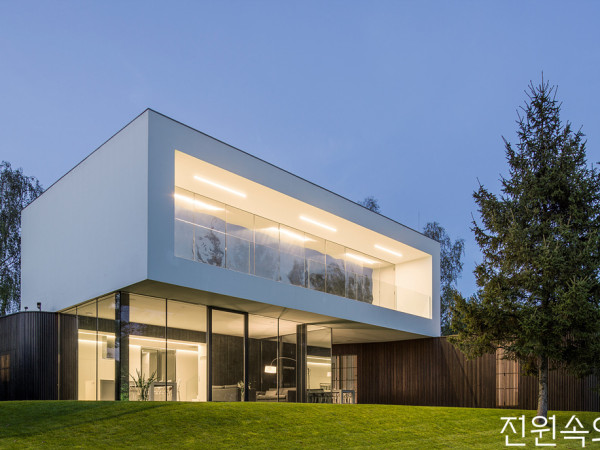 해외 주택 사례를 보며 많은 사람은 ‘해외니까 가능한 것’이라며 먼저 포기하곤 한다.하지만, 특이한 주택도 결국은 우리와 비슷한 사람들이 할 법한 고민의 결과일 뿐이다.프라이버시와 개방감의 조화, 건물과 자연의 균형감, 전시공간과 주거의 공존.이 평범한 고민들이 건축가의 손을 통해 어떻게 해결되었는지,해외의 세 사례를 통해 우리 집의 가능성을 가늠해보자.LOCATION Izbica, Masovian, Poland AREA 318㎡ SITE AREA 1,712㎡ ARCHITECT KWK PROMES www.kwkpromes.pl/en주택의 전면 모습. 1층의 길게 뻗어 나온 포치에는 야외 활동 후 간단히 씻을 수 있는 외부 샤워수전을 뒀다.현관문을 비롯한 외부 1층 후면의 개구부 전체를 루버 덧문으로 막아 모던한 인상을 연출했다.자연과 주택의경계를 허문정원 가득한 집폴란드의 수도인 바르샤바에서 북쪽으로 30km, 차로 여유롭게 달려도 1시간이 채 안 걸리는 한적한 교외의 한 마을인 이즈비카. 때 묻지 않은 자연스러움과 한적한 농촌의 풍광 덕분에 휴가용 주택이 여럿 들어선 이곳 시골마을에 건축주는 대지를 구해 건축가에게 주택 한 채를 의뢰했다.대지는 강이 만곡을 이루며 흘러가는 아름다운 풍경이 한눈에 담기는 언덕 위에 자리했다. 건축가는 강이 보이는 남향으로 시야를 시원하게 열어 자연을 집 안에 고스란히 담아내고 건축주가 오롯이 휴식에 집중할 수 있도록 주변 시선을 적절히 차단하고자 했다. 물론 그러면서도 주택이 최대한 자연의 모습에 거스르지 않아야 했다.저녁에는 루버 덧문 사이 틈새로 실내 불빛이 흘러나와 독특한 분위기를 만든다.SECTION(위, 아래) 욕실과 사우나가 붙어있는 스파 공간. 사우나룸에서는 넓은 창을 통해 바깥을 감상할 수 있다.전면의 큰 거울을 둬 더 넓어보이는 침실 쪽 욕실. 바쁜 아침을 위해 세면대도, 샤워 수전도 모두 두 개씩 갖췄다.건축주와 건축가는 드러낼 곳과 가릴 곳을현명하게 구분했다.덕분에 주택에서는 개방감을 누리면서도외부 시선에 위축되지도, 시야가 답답하지도 않다.복도와 나란히 자리한 계단. 꺾지 않고 주욱 뻗어 제법 깊이감 있다.(위, 아래) 침실에서 바라본 풍경. 일조량이 강하면 스테인리스스틸 미러로 마감된 덧문을 닫아 일조량을 조절하면서도 외부에서 봤을 때 그대로 하늘이 보여 튀지 않고도 사생활을 현명하게 보호할 수 있다.PLAN 1 차고 2 현관 3 주방 4 식당 5 거실 6 침실 7 갤러리 8 욕실 9 스파 10 포치 11 테라스 12 기계실 13 테라스 14 드레스룸레벨차 없는 바닥, 넓은 유리창, 그리고 미리 고려된 바닥 컬러가 1층의 실내외 구분을 무의미하게 만든다.레벨차 없는 바닥, 넓은 유리창, 그리고 미리 고려된 바닥 컬러가 1층의 실내외 구분을 무의미하게 만든다.그 고민의 결과로 1층은 바위 형상에서 모티프를 가져온 둥근 모습에 전반적인 모습을 ‘ㄴ’자에 가깝게 조형했고, 그 위에 소재와 색상, 질감을 달리한 2층 육면체 매스를 걸치듯 얹어 침실 등 프라이버시 공간을 배치했다.느슨하게 꺾여 시베리아산 루버로 마감된 1층 ‘ㄴ’자 매스 안에는 주방이나 거실 등 공용공간이 골고루 놓였다. 다만, 주방과 마주하는 다이닝과 외부 테라스는 비스듬히 얹혀진 1층 매스의 바깥, 2층 매스가 만드는 그늘 밑에 자리한다. 이곳 바닥은 바깥 잔디와 유사한 소재와 컬러로 마감하고 외부와의 경계는 필요할 때 열 수 있는 유리 파티션만으로 구성했다. 덕분에 낮에는 주택이 가진 이름(Living-Garden)처럼 생활과 정원, 안과 바깥, 인공적 공간과 자연이 상호작용하는 인상적인 공간이 될 수 있었다.취재_신기영| 사진_ Jakub Certowiczⓒ 월간 전원속의 내집/ Vol.265www.uujj.co.kr월간 <전원속의 내집> 의 기사 저작권은 (주)주택문화사에 있습니다. 무단전재, 복사, 배포는 저작권법에 위배되오니 자제해주시기 바랍니다.