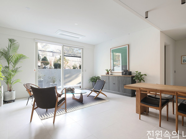 오래된 주택이 즐비한 동네에서 발견한 집 한 채. 이 집을 찾기까지 3년이 넘는 시간이 걸렸다는 부부의 좌충우돌 주택 개조기.지금의 집을 만나기 위해 장병준, 박소현 씨 부부는 참 먼 길을 돌아왔다고 했다. 그저 조건에 맞춰 동네를 정하고 집을 찾아 고치면 끝이라 생각했던 주택 라이프가 두 사람에게만큼은 좀처럼 쉽게 다가와 주질 않았다. 그 시작은 3년 전으로 거슬러 올라간다.“Blooming Garden, 그루 Flower&Garden 등을 운영하며 일에 많은 시간을 투자하다 보니 어느 날 몸도 마음도 너무 지치더라고요. 이후 사업을 하나씩 정리하고 집에서 쉬고 있을 때쯤이었던 것 같아요. 평소 가지고 있던 주택에 대한 로망이 더욱 커지게 된 건….”Before 2002년 지어진 ‘ㄱ’자형 주택으로, 도로 쪽으로 건물이 있고 정원이 중정처럼 안쪽으로 있는 형태였다. 탁 트인 뷰와 아늑한 정원, 넓은 주차 공간까지 갖춰 당시에는 현대적으로 지은 집이었지만, 그동안 집주인이 살지 않고 오랫동안 방치해 내부가 아주 낡아 있었다. 또한, 각 층을 연결하는 계단이 주택 내부가 아닌 별도 계단실로 구획되어 있어 리모델링 시 층별 공간 구분을 명확하게 해야 했다.HOUSE PLAN대지위치≫ 서울시 종로구 대지면적≫ 460㎡(139.15평) 건물규모≫ 지하 2층, 지상 2층 |거주인원≫ 2명(부부) + 반려견 2 건축면적≫ 135.43m2(40.96 평) | 연면적≫ 608.28㎡(184평) 건폐율≫ 29.44% | 용적률≫ 58.88% 주차대수≫ 5대 구조≫ 기초 – 철근콘크리트 매트기초 / 지상 – 벽 : 철근콘크리트, 지붕 : 무근콘크리트 단열재≫ 기존 외단열 외 내단열 압출법보온판 덧시공 외부마감재≫ 기존 드라이비트 위 도장 마감 창호재≫ ㈜이플러스윈도우 43㎜ 시스템창호 시공≫ 건축주 직영 설계≫ KoNA PLAN(코나플랜) 0507-1405-1165거실에서 바라본 주방. 제각각이었던 천장 높이를 정리하고, 불필요한 벽체를 철거하여 넓은 동선을 확보했다. 단, 주방쪽 기존 내력벽은 그대로 두고 가운데 있던 문을 떼어낸 후 하부장을 만들어 공간 구분을 해주었다.침실 옆 욕실은 세면실 및 화장실과 샤워실을 분리하여 배치했다.어린 시절, 어머니가 열심히 가꾸시던 정원 있는 주택에서의 좋았던 기억도 부부의 주택행에 힘을 실어주었다. 자연을 곁에 두고 살 수 있는 서울 도심의 조용한 주택가. 새로운 보금자리가 필요했던 두 사람에게 이는 무엇보다 중요한 집의 조건이었다. 그러다 그와 적합한 주택을 성북동에서 찾았고 바로 매입을 진행했다. 그러나 이것이 첫 번째 실패였다.“전 주인이 지적도상 문제가 있는 집을 속이고 팔았다는 걸 공사 도중 알게 되었어요.제대로 마무리도 못 한 채 소송하느라 2년이란 시간을 허비해버렸죠.”승소는 했지만, 금전적인 피해를 보았고 꿈꾸었던 주택에서의 삶은 다시 원점이었다.마당을 향해 열린 창 덕분에 환한 빛을 들인 거실 공간원목마루로 따스함을 살린 침실마음을 가다듬고 부부는 평소 좋아하던 평창동으로 거처를 옮겼다. 나오는 주택 매물들을 눈여겨보며 지낸 지 1여 년. 드디어 만나게 된 곳이 바로 지금의 집이다. 전체 리노베이션을 생각할 정도로 내외부 모두 심각한 상태였지만, 집을 옮길 때마다 직접 인테리어해 본 소현 씨에겐 오히려 자신의 손이 닿아 바뀔 낡은 집의 변화가 기대되고 설렜다. 하지만, 그 즐거움도 잠시. 전문가의 손길이 필요해 찾았던 건축가의 불성실함에 두 번째 실패를 맛보았다.INTERIOR SOURCE내부마감재≫ 벽 – 신한벽지, LG하우시스 베스띠 / 바닥 – ㈜유로세라믹 포세린 타일(거실), 지복득마루 원목마루(방) 욕실 및 주방 타일≫ 대호타일 포세린 타일 주방 가구≫ 한샘, Franke(후드), GESSI(수전), TOYOURA(씽크볼) 조명≫ LED 할로겐 T5 방문≫ 예가도어 ABS도어 위 도장 데크재≫ ㈜뉴데크우드코리아 울트라쉴드데크 그레이1층 긴 복도를 따라가면 그 끝에 서재가 자리한다.안쪽으로는 정원 뷰, 반대편은 북한산 뷰를 담은 요가&명상실. 한 벽면은 거울로 마감하고 최소의 가구만 놓아 공간 본연의 기능에 충실할 수 있도록 했다.“또다시 실수하고 싶지 않아 나름 열심히 알아보았다고 생각했는데, 한두 번 만나서는 그 사람의 됨됨이를 알 수 없는 것 같아요. 빨리 공사하고 싶어 꼼꼼히 살피지 않고 급하게 결정한 게 큰 잘못이었죠.”그래도 더는 지체할 수 없단 판단하에 얼른 털고 다시 일어나 새로운 디자이너와 손을 맞잡았다. 소현 씨가 틈틈이 정리해 둔 집의 전체 이미지뿐 아니라 공간별 디테일, 가구, 색상, 소재 등의 자료는 머릿속에 있던 집 모습을 그려나가는 데 많은 도움이 되었다.지하 2층, 지상 2층으로 이뤄진 주택에서 주차장인 지하 2층과 임대를 준 2층을 제외하고 두 개의 층이 부부를 위한 공간으로 계획되었다. 각 층으로 통하는 계단실이 별도로 마련돼 있어 층마다 용도를 달리하고, 두 사람의 취향을 반영해 눈에 띄기보다 기존 가구나 소품을 가져다 놓았을 때 자연스럽게 어울릴 수 있는 깨끗한 도화지 같은 공간을 만들고자 노력했다.1층에 마련한 소현 씨의 작업실. 미니 주방을 설치해 지인들과 차와 커피를 즐길 수 있게 해주었다. 창 아래는 키우기 쉬운 관엽 위주의 실내 식물들을 놓아 산