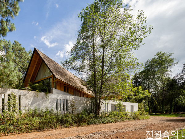 LOCATION | Avándaro, State of Mexico, Mexico AREA | 590m2 ARCHITECT | Estudio MMXhttps://mmx.com.mx따로 또 같이 자연과 조화를 이루는 집아반다로(Avándaro)는 울창한 숲과 화려한 폭포, 아늑한 호수가 만드는 수려한 자연경관으로 많은 멕시코인의 사랑을 받는 휴양 도시 중 하나다. 그래서 골프나 휴가를 즐기러 오는 사람들의 발걸음이 이어지며 세컨드하우스와 숙박시설 건축이 비교적 활발한 지역이기도 하다. 건축그룹 Estudio MMX의 ‘CRA House’는 이곳의 한 골프장의 의뢰를 받아 클럽하우스로 계획되어 지어졌다.주택은 1층의 철근콘크리트구조, 2층의 목구조가 함께 어우러진 하이브리드구조로 지어졌다.건물에서 연장되어 만들어진 노출콘크리트 담장에는 세로로 긴 개구부를 만들어 야간에 독특한 빛 노출을 만들어낸다.숲을 향하는 안마당을 중심으로 공용공간이 길게 배치되었다.클럽하우스라는 특성상 도드라진 외관 요소로 주변과의 조화를 깨뜨리지 않고 그 속에 어울릴 수 있기를 주문받았다. 때문에 1층은 철근콘크리트구조에 노출콘크리트로 채도를 낮췄으며, 2층은 목재를 그대로 노출하고 나무 실루엣을 닮은 날카로운 박공 선과 목구조를 갖게 되었다. 여기에 지붕재도 전통적인 분위기를 더하는 목재 사이딩을 적용했다.침실들이 자리한 2층의 공용공간. 정중앙의 천창으로 들어오는 햇빛 덕분에 특별한 조명 없이도 밝다.테라스 공용 공간에는 간단한 주방 설비들과 TV, 안락한 실외 가구들이 마련되어 많은 시간을 보내는 데에도 불편함이 없다.세대 간, 실내외 간, 그리고 주택과 그 주변을 둘러싸는 자연과 호흡하도록 고민을 거듭한 집. 어디에서든 연결되면서도 원하는 대로 방해받지 않는, 치유를 위한 집이다. 이곳에서의 재충전은 다시 도시에서 뜨겁게 살아갈 힘을 준다.침실마다 그 위로 다락이 자리해 가족의 어린 자녀들에게 재미난 공간이 되어준다.Plan 1 침실 2 욕실 3 주방/식당 4 거실 5 다락초록의 자연 조명이 실내로 은은하게 퍼진다.1층 안쪽은 긴 폴딩도어를 적용해 필요에 따라 실내외를 자유롭게 잇고 끊는다.전반적인 주택 형태와 실내 구조는 한 세대씩 배치한 매스 네 덩어리를 바람개비처럼 서로 엇갈리게 놓았다. 이는 세대별 적절한 위요감을 줄 수 있도록 하면서, 골프장과 숲으로 방해받지 않는 조망을 충분히 확보하기 위함이었다. 여기에 주택은 4세대가 한꺼번에 머무를 수 있도록 각 가족 안에서의 공용공간과 전체 공용공간을 1층에, 그리고 프라이빗한 공간을 2층에 적절히 녹여냈다.세대별 욕실 모습. 욕조는 창문 옆에 둬 목욕 중 경치를 감상하기 좋다.긴 테라스 끝에는 수공간이 자리해 낮에는 수면에서 반사되는 빛그림자가 천장을 아름답게 수놓는다.각각의 공간과 기능이 유기적으로 연계된 건축물이다.1층은 주방, 식당 등 반(半) 외부 공간 등이 배치됐고, 2층은 침실과 욕실, 다락 등이 놓였다. 열린 천장 위로 천창을 두어 풍부한 채광과 태양열을 효과적으로 활용할 수 있도록 한 점 또한 이 집의 특징 중 하나다. CRA House는 단순한 다세대 집합건물이 아닌, 유기적으로 호흡하면서 때론 깔끔히 분리될 수 있도록 동선부터 재질, 시선까지 고려해 최고의 안락함을 준다.구성_ 신기영 | 사진_ Rafael Gamoⓒ 월간 전원속의 내집 / Vol.265 www.uujj.co.kr