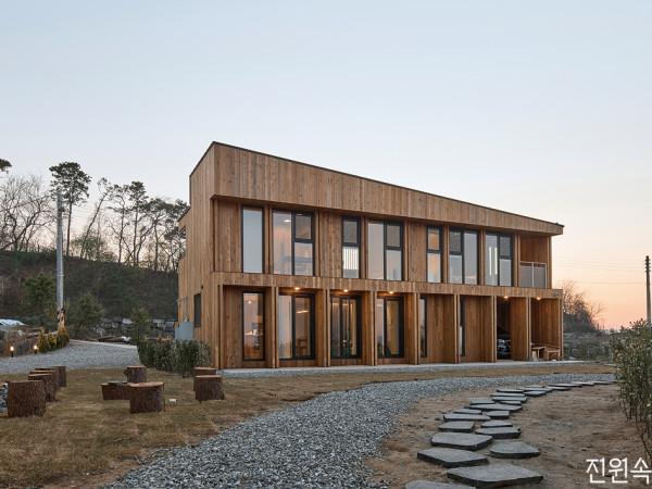 | 시골 삶을 택한 가족들 : home + bookstore도시를 벗어나 시골에서 살 수 있을까? 편리한 환경을 뒤로한 채 익숙하지 않은 낯선 곳에서 새로운 생활을 시작하기란 쉬운 일이 아니다. 이전과는 확실히 달라진 일상들. 고민 끝에 내린 도전이었지만 결론은 행복한, 도시 아닌 삶의 대안을 시골행으로 이룬 세 가족의 이야기를 들어본다.아이와 어른이 모두 천진난만하게 살 수 있는 곳을 꿈꾸며 찾은 이곳. 가족이 거주할 주택과 동화 체험공간인 서점, 방문객을 위한 북스테이까지 오밀조밀 채웠다.오랫동안 잡아 온 교편을 내려놓고 입시학원을 운영하던 지난날. 방정민 씨의 건강에 이상이 생기기 시작한 것도 그 무렵이었다. 바삐 돌아가는 일과와 경쟁 위주의 교육으로 지쳐가는 아이들을 볼 때마다 마음이 무거웠다. 그러다 우연히 찾은 한 동화(童話) 토론에서 그는 쌓인 스트레스를 풀며 조금씩 동화 속에 동화(同化)되어 갔다고 말한다.1 한적한 시골에 놓인 집과 서점. 서점을 찾는 방문자에게는 생경한 길일 수 있었지만, 근처에 호수와 생태공원이 있어 건축주가 생각한 자연 속 작은 도서관이 되기에는 충분한 장소였다.“지역주민들과 함께 꾸준히 그림책 모임과 그림자 공연을 하다 보니 아이뿐만 아니라 어른을 위한 동화책 공간과 모임 및 공연 장소를 만들어보고 싶다는 생각이 들었어요. 마침 아버지로부터 물려받은 토지가 있어 가족과 논의 후 이주를 결심했죠.”2 서점 진입부 모습. 좌측에 주거공간이 자리한다. 건물 측면으로 출입하는 대지 상황에 맞게 큰 포치를 두어 서점과 북스테이를 분리하였다.초등학생 삼 남매를 둔 상황에서 도심을 떠나 시골로 간다는 건 누구나 말릴 법한 쉽지 않은 선택이었지만, 자라는 아이들과 건강한 삶을 바랐기에 변화에 두려워하지 않는 도전을 하게 되었다.HOUSE PLAN대지위치 경기도 평택시 현덕면 덕목5길 122-11 대지면적 주택동 – 485㎡(146.71평) / 서점동 – 725㎡(219.31평) 건물규모 지상 2층 | 거주인원 5명(부부 + 자녀 3) 건축면적 주택동 – 82.08㎡(24.82평) / 서점동 – 131.82㎡(39.87평) 연면적 주택동 – 138.51㎡(41.89평) / 서점동 – 158.34㎡(47.89평) 건폐율 주택동 – 16.92% / 서점동 – 18.18% | 용적률 주택동 – 28.56% / 서점동 – 21.84% 주차대수 3대 | 최고높이 6.88m 구조 기초 - 철근콘크리트 매트기초 / 지상 - 경량목구조 외벽 2×6 구조목 + 내벽 S.P.F 구조목(벽), 2×8 구조목(지붕) 단열재 수성연질폼 140mm 발포 외부마감재 벽 – 유절적삼목, 컬러강판 / 지붕 – 컬러강판 담장재 개비온월 | 창호재 이건창호 PVC 시스템(삼중유리 43mm) 에너지원 LPG | 조경석 화산석 | 조경 노보커뮤니케이션 나진형 전기·기계 천일 최형철 | 설비 한빛기술단 주찬종 내부마감재 벽 – DID 실크벽지 / 바닥 – 이건마루, 포세린 타일 욕실 및 주방 타일 자기질타일 | 수전 등 욕실기기 아메리칸스탠다드 주방 가구·붙박이장 현장 제작 | 조명 시공사 구입 계단재·난간 자작합판 + 평철 난간 | 현관문 현장 제작 중문·방문 영림임업 | 데크재 루나우드 19mm 시공 KS하우징 장길완 설계 투닷건축사사무소 조병규, 모승민 02-6959-1076 https://todot.kr 총공사비 5억4천만원(설계비 및 인테리어, 토목, 조경 제외) 취재협조 아르카북스 www.instagram.com/arca_booksSECTION① 현관 ② 거실 ③ 주방 ④ 테라스 ⑤ 화장실 ⑥ 주차장 ⑦ 다용도실 ⑧ 보일러실 ⑨ 발코니 ⑩ 안방 ⑪ 드레스룸 ⑫ 욕실 ⑬ 가족실 ⑭ 침실 ⑮ 서점⑯ 북스테이PLAN+home+ home 1F – 61.56㎡ 2F – 76.95㎡PLAN+bookstore+ bookstore 1F – 131.82㎡ 2F – 26.52㎡3,5 지붕 마감재를 외벽까지 연결시킨 단순한 형태로 디자인 요소를 줄여 공사비를 절감했다. 외부에 둔 통나무 의자와 삼각형 연못이 주변 분위기와 함께 편안함을 더한다.여느 집과는 달리 대지 위에는 집과 서점, 북스테이가 한데 놓여야 했다. 각각의 건물이 자연스레 연결되는 배치 동선과 알맞은 규모를 찾는 것이 무엇보다 우선이었다. 그동안 여러 지역을 돌며 같은 용도의 많은 건물을 본 정민 씨는 주택은 불필요한 공간이 생기지 않도록 다섯 식구가 머물 만큼만, 대신 서점은 최대한 컸으면 좋겠다는 바람을 건축가에게 전달했다.4 채광 좋은 북스테이의 복층 침실설계를 맡은 투닷건축사사무소 모승민 소장은 “서점은 거주하는 집과는 독립된 공간이고, 건축주에게는 삶의 터전이었다”며 “따라서 책 중심이 아닌 책을 매개로 한 소통의 공간을, 찾는 이에게는 쉘터 같은 공간이 될 수 있는 장소를 만들었다”고 설명했다.6 복층 높이의 서점은 외부에서는 폐쇄적으로 보일 수 있지만, 안에서는 평택호와 북스테이를 시선으로 연결하여 개방감을 가진다. 천창은 지붕과 벽으로 연결 지어 햇빛이 내부로 들게 했다. 이는 플랜테리어를 고려해 식물들이 잘 자라게 하기 위한 장치이다.이미 본인의 집을 지어 살고 있는 건축가였기에 특히 주택에 관해서는 많은 부분 도움을 받았다. 1층에는 현관과 연결된 공용화장실을 두어 아이들이 쉽게 이용하게 하는 등 편리함을 더했다. 거실로 들어오면 주방과 식당이 통합되어 다섯 식구가 있기에 부족함이 없다. 또한, 거실에는 마당으로 연결된 여러 개의 출입문이 있어 활짝