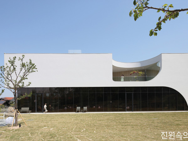 자연 속에서 풍경을 담기도, 풍경이 되기도 하는 건축. 단순하지만 단정한 멋으로 사람들의 발길을 재촉한다.단순함 속에 숨어 있는 건축 디테일밀도 높은 도심을 피해 교외를 찾아 나서는 요즘, 청주 효촌리 고즈넉한 마을에 넓은 정원을 품은 카페 하나가 들어섰다. 마치 갤러리를 연상시키는 건물의 설계자는 스타일랩 건축사사무소의 안응준 소장.“3km 떨어진 외곽도로에서 봐도 이질감이 느껴지지 않도록, 건물이 산의 능선을 파괴하지 않도록 배치와 ‘선(線)’에 각별히 신경 썼습니다.”그의 말처럼 진입로에서 보기에는 일반 주택과 비슷했던 폭의 건물이, 돌아들어서자 너른 품을 펼쳐 보이며 새로운 공간감을 선사한다. 덕분에 동네 풍경을 해치지 않는 간결한 매스 속에 단정한 직선, 긴장감을 주는 사선, 부드러운 아치 등 숨어 있는 디테일을 찾는 재미가 있다.2,3 땅에 순응하듯 지하층을 삽입해 자연스럽게 경사지에 녹아든다. 층마다 강조되는 재료와 색상이 달라 지루하지 않은 한편, 전체적으로는 차분한 톤앤매너를 유지한다.세 필지를 합한 경사지에 순응하듯 앉혀진 카페. 각 층에 입혀진 외장재 역시 허투루 쓰이지 않았다. 주차장과 목공방이 자리한 지하층은 환영하는 느낌의 루버월, 1층엔 매스감을 살리는 브론즈 유리 커튼월, 하늘과 맞닿은 2층은 펄이 들어가 화사하면서도 반짝거리는 미장스톤이 각각의 자리에서 제 역할을 충실히 수행한다.HOUSE PLAN대지위치 ▶ 충청북도 청주시 남일면 효촌리 77-2 대지면적 ▶ 1,777㎡(537.54평) | 건물규모 ▶ 지하 1층, 지상 2층 건축면적 ▶ 286.07㎡(86.53평) | 연면적 ▶ 728.92㎡(220.49평) 건폐율 ▶ 16.09% | 용적률 ▶ 27.28% | 구조 ▶ 철근콘크리트 단열재 ▶ 난연 가등급 비드법보온판 | 외부마감재 ▶ 미장스톤 창호재 ▶ 고효율 단열인증 커튼월 | 조경 ▶ 더숲 | 전기·설비 ▶ 오주명 전기·통신공사 ▶ ㈜대원전력 윤종수 010-7558-4110 | 소방 ▶ ㈜경원소방 구조설계 ▶ ㈜바로구조 기술사사무소 민정규, 윤진용 시공 ▶ ㈜대성건설 031-8015-5559 (현장소장 구수문 010-7115-0234) 설계 ▶ 스타일랩 종합건축사사무소INTERIOR SOURCE내부마감재 ▶ 벽 - 노루표 투명 에폭시페인트, 친환경 수성페인트 / 바닥재 : 영광폴리싱 콘크리트 폴리싱 마감 욕실 및 주방 타일 ▶ 아이에스동서 수전 등 욕실기기 ▶ 빈센트글로벌 prestone, 릭실코리아 | 주방 가구 및 붙박이장 ▶ 월광산업 | 조명 ▶ ㈜나스필코리아, ㈜화승라이팅 계단재·난간 ▶ 철재 난간(현장 제작 및 설치) 출입문 ▶ ㈜태성자동문(주출입), ㈜태양세이프도어 단열프레임 + 단열세이프도어(부출입), ㈜제일방화문 고효율 일반단열문(갑종방화문) 데크재 ▶ 성원 그린워시SECTION① 주차장 ② 목공방 ③ 선큰 ④ 카페 ⑤ 중정 ⑥ 사무실PLANB1F – 243.15㎡ 1F – 265.93㎡ 2F – 218.88㎡4 긴 우드 테이블을 중심으로 삼은 레이아웃. 인테리어는 작은딸 이환은 씨가, 실내에 배치된 테이블은 모두 남편 이종호 씨가 만들었다.음악과 미술, 목공과 커피의 공존이 공간의 주인은 인테리어 사업을 했던 아내 김연실 씨와 지역에서 학생들을 가르칠 정도로 목공에 일가견이 있는 남편 이종호 씨 부부. 큰딸은 바이올린을 켜고, 작은딸은 엄마를 이어 인테리어를 할 정도로 가족 전체가 예술에 직·간접적으로 연결되어 있다. 그래서 이 카페 역시 평소에는 식음료를 판매하지만, 특별한 날에는 1층 평상이 무대가 되어 연주회를 열거나 2층은 청주 지역 젊은 작가들의 전시장이 되도록 설계단계부터 치밀하게 계획했다.5 건물 둘레 창가를 따라 배치된 자리와 긴 테이블 외에 평상 스타일의 공간도 마련했다. 때론 미니 콘서트장이 되기도 하는 곳으로, 산을 형상화한 벽화는 이환은 씨가 직접 그렸다.INSTAGRAM SPOT!SPOT 1 곡선의 중정 곡선 중정이 만들어내는 드라마틱한 빛과 그림자. 미러월(Mirror Wall)과 공작 단풍 사이에서 한 컷! SPOT 2 풍경을 담는 프레임 바깥을 향해 탁 트인 전망이 펼쳐지는 2층 테라스. 시선의 확장을 위해 전기선 지중화공사까지 감행했다. SPOT 3 운치 있는 정원 볕이 좋은 날은 실내보다 정원이 더욱 인기있다. 면적이 넓고 풍경이 좋아 야외 결혼식 문의도 많다는 후문.6 모처럼 한자리에 모인 가족이 단란한 시간을 보내고 있다.7 전체적으로 노출콘크리트와 화이트 톤을 바탕으로 삼았지만, 카운터와 베이커리 공간은 블랙으로 마감했다.문화를 담는 그릇으로서의 공간이라 인테리어 역시 섬세한 손길이 필요했다. 인테리어를 맡은 작은딸 이환은 씨는 “사람들이 여기 오는 건 도심을 벗어나 자연 속에서 여유를 누리기 위해서라고 생각했어요. 처음 건축을 봤을 때 ‘1층은 땅과 산, 2층은 하늘’이라 해석하고 평상, 정원, 천장 디테일 등 자연 조건을 극대화하는 디테일에 주목했어요.”라며 내부를 소개했다.8,9 2층 한쪽 벽에 전시를 기획할 수 있도록 마이너스 몰딩과 픽처레일을 설치했다. 분리된 실에는 할아버지 댁에서 가져온 천장 구조물을 새로 칠해 달았다.카페의 이름인 에클로그(ecologue)는 서정적인 ‘전원시(田園詩)’를 뜻한다. 자연 속에 펼쳐진 시적인 공간에 어울리는 이름이다. 동시에 단어 속에 담긴 나무(log)는 