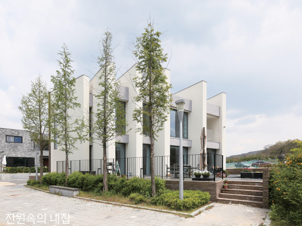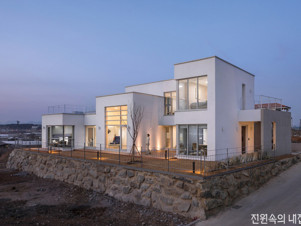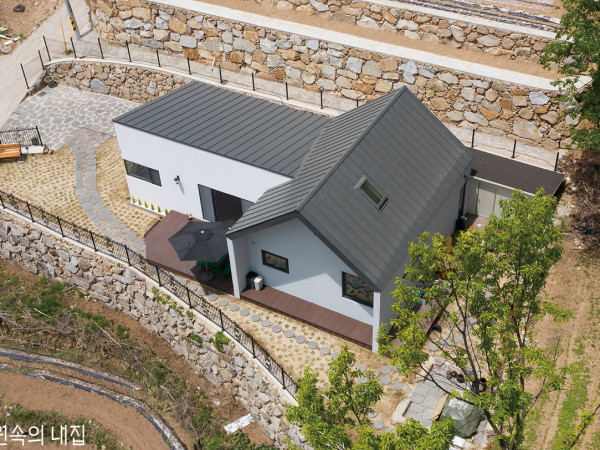 연로하신 부모님을 위해 손수 하나하나 챙기며 집을 지어드리고자 애쓴 건축주의 깊은 효심이 백색의 건축에 담기어 대지 위에 놓였다.경기도 여주에 위치한 새하얀 집. 이곳은 자녀들과 떨어져 지방에서 지내고 계신 노부모님을 위해 계획된 단독주택이다. 건축주는 두 분이 공기 좋고 풍광이 아름다운 자연의 터에서 노후를 편안하고 안락하게 보내길 바라며 아키텍츠601 심근영 소장을 찾았다.“건축주는 연로한 부모님을 생각해 시간이 지나도 관리가 용이하며 내구성에 하자가 없을 탄탄하고 견고한 설계와 마감재를 원했어요. 다락방을 두어 공간의 다양한 쓰임과 풍경들을 마주할 수 있길 요청하기도 했고요.”오랫동안 아파트에 거주한 부모님께 삶의 또 다른 행복을 안겨드리고 싶었기에 마음의 기쁨과도 같은 화사한 집의 형상을 구현해줬으면 좋겠다는 바람도 전했다.대칭의 축이자 건물의 중심인 주출입구는 전면에 그대로 드러나며 출입동선의 명쾌함을 선사한다.아침 햇살을 받는 동향의 툇마루PLAN1F – 98.99㎡, ATTIC – 39.64㎡ / ①현관 ②거실 ③주방/식당 ④팬트리 ⑤복도 ⑥욕실 ⑦게스트룸 ⑧안방 ⑨드레스룸 ⑩테라스 ⑪다락 ⑫창고HOUSE PLAN대지위치 ▶ 경기도 여주시 걸은리 대지면적 ▶ 578.00㎡(174.84평) | 건물규모 ▶ 지상 1층 + 다락 | 거주인원 ▶ 2명(부부) 건축면적 ▶ 98.99㎡(29.94평) | 연면적 ▶ 98.99㎡(29.94평) 건폐율 ▶ 17.12%(법정 40%) | 용적률 ▶ 17.12%(법정 100%) 주차대수 ▶ 1대 | 최고높이 ▶ 7.1m 구조 ▶ 기초 – 철근콘크리트 매트기초, 철근콘크리트 줄기초 등 / 지상 – 철근콘크리트 단열재 ▶ 비드법단열재 2종1호 200mm, 압출법단열재 2종2호 30mm 외부마감재 ▶ 벽 – 스터코플렉스 마감 | (EPS 50mm) / 지붕 – 알루미늄 징크 패널 창호재 ▶ ㈜공간시스템창호 72mm 알루미늄 시스템단열창호, 로이삼중유리 (에너지등급 2등급) 열회수환기장치 ▶ 힘펠 | 에너지원 ▶ LPG | 조경석 ▶ 발파석(자연석) 전기·기계·설비 ▶ ㈜덕수이엔지 토목 ▶ 한아름조경 구조설계(내진) ▶ ㈜SDM구조기술사무소 시공 ▶ 건축주 직영 설계 ▶ 아키텍츠601 031-701-5526 www.architects601.com해 질 녘 집의 정면. 따스한 조명 빛이 외부를 밝혀준다.자연의 색조와 질감이 돋보이는 주방. 가구 고유의 공예적 분위기와 팬트리를 가린 패브릭의 온화함으로 색다른 분위기를 완성했다. 포세린 타일로 마감한 바닥 또한 공간 속에 잘 어우러진다.당시 건축주가 매입한 대지에는 30년 정도 지난 오래된 구옥이 있었다. 집의 상태와 건축주의 요구사항을 고려했을 때 신축이라는 선택을 피할 순 없었다. 결국 전면 철거 후 건축의 배치와 시공이 진행되었고, 유난히 비가 많이 내렸던 날씨와 지방 공사의 변수 등으로 착공에서 완공까지 약 6개월의 시간이 소요되었다. 그렇게 크고 작은 어려움을 극복하며 이면도로에 서 있던 옛집은 간결한 모습으로 대지를 품어 안고 ‘기쁨의 주택’이란 이름으로 새롭게 태어났다.POINT 3POINT 1 / 백색 건축 외관을 이루는 재료와 물성은 통일된 색과 마감으로 전체를 하나로 묶는다. 백색의 외관은 풍경과도 조화를 이룬다.POINT 2 / 천창의 빛 천창에서 쏟아지는 빛은 시간의 흐름에 따라 내부에 스며들기도 하고, 때론 드라마틱한 한줄기 섬광으로 공간에 내려앉는다.POINT 3 / 제작 가구 자작나무로 제작한 주방 가구는 나무의 질감과 결을 통해 시각의 촉각화를 안겨주며 집 안에 온기를 가득 담아낸다.천장의 슬릿한 간접 조명은 좁은 복도 공간에 확장성과 연속성을 가져다준다.하늘을 향하는 수직적 원형 계단과 시간의 흐름에 따라 다채로운 변주로 공간에 녹아드는 태양 빛은 거주자로 하여금 다양한 감상을 하게 한다.계단의 조형적 형상과 뒷산의 풍경을 욕실 내 욕조로 끌어들였다. 내부 공간과 욕실이 단절되지 않도록 오픈하고 블라인드 개폐를 통해 프라이버시를 확보했다. 건축주의 취향을 담아 타일 마감을 최소화했으며, 도장으로 처리된 벽면은 외부용 수성·방수 페인트로 마감되어 깔끔한 인상을 준다.은경(銀鏡)을 통해 공간이 넓게 느껴지는 안방대지 후면에 인접한 산으로 인해 습기에 취약할 수 있어 구조는 철근콘크리트 공법으로 정하고, 외장재는 단열 성능과 미관의 유려함을 위해 스터코플렉스를 선택하였다. 자연과 대비되는 기하학적 건축의 형태는 깨끗한 미색의 마감으로 순수한 백색의 도화지가 되기에 충분했다. 집은 나뭇결의 깊은 우직함과 빛에 드리워진 그림자의 짙은 음영으로 사계절의 변화를 담고, 시간의 흐름에 따른 다채로운 풍경으로 부모님께 안락하고 편안한 보금자리를 만들어준다. 앞마당을 조금 더 여유 있게 쓰며 인허가 면적 30평 내외로 아담하고 실용적인 주택을 원한 건축주의 요청을 그대로 반영했고, 약간의 성토작업을 통해 건축 자체의 레벨을 높여 전면성과 주목성도 부각시켰다.SECTION①현관 ②거실 ③주방/식당 ④팬트리 ⑤복도 ⑥욕실 ⑦게스트룸 ⑧안방 ⑨드레스룸 ⑩테라스 ⑪다락 ⑫창고INTERIOR SOURCE내부마감재 ▶ 벽 – 아이사랑 친환경 수성 도장, LG하우시스 친환경 벽지 / 바닥 – 이건 온돌마루, 포세린 타일 등 욕실 및 주방 타일 ▶ 유로세라믹 