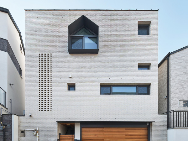 여러 가지 제한적인 상황 속에 쌓아 올린 3층 주택. 특별한 무언가를 더하지 않아도 충분히 행복한, 삼 형제의 집이다.언제나 시작은 건축주의 이야기를 들으면서부터다. 이때 어떤 방들이 필요하고, 외부는 이런 자재라면 좋겠다는 실용적인 이야기를 하는 분도 있고, 특별히 어떤 이야기를 해야 할지 몰라 머뭇거리시는 분도 있다.또바기집은 아이들 이야기부터 시작했다. 세 형제의 이야기. 아이들이 어떤 것을 좋아하는지, 학교는 어떻게 다니고 있는지, 막내는 형들과 어떻게 지내는지 등. 이야기를 듣다 보니 형제의 모습이 떠오르는 것 같았다. 건축주 부부는 가족들이 지금처럼 오랫동안 행복하고 화목하게 지낼 수 있는 집을 원했다. 그래서 집 이름도 언제나, 늘 한결같다는 뜻의 ‘또바기집’으로 하고 싶다고 했다.1 주방에서 바라본 거실 모습. 거실 상부에는 그물 해먹을 두어 아이들의 놀이공간으로 사용한다.2 야외 활동을 위해 앞마당에는 캐노피를 설치하였다.3 어둠이 내려앉은 또바기집. 2층 박공창은 단조로울 수 있는 건물의 얼굴에 변화를 준다. 외벽은 벽돌로 마감했다.HOUSE PLAN대지위치 ▶ 경기도 용인시 │ 대지면적 ▶ 146.2㎡(44.23평) 건물규모 ▶ 지하 1층, 지상 3층│거주인원 ▶ 5명(부부 + 자녀 3) 건축면적 ▶ 70.78㎡(21.41평) │연면적 ▶ 247.15㎡(74.77평) 건폐율 ▶ 48.41% │용적률 ▶ 96.59% │주차대수 ▶ 2대 │최고높이 ▶ 12.63m 구조 ▶ 기초 – 철근콘크리트 매트기초 / 지상 – 철근콘크리트 단열재 ▶ 비드법단열재 150mm 가등급 외부마감재 ▶ 외벽 – 고갱 화이트 벽돌 / 지붕 – 징크 담장재 ▶ 두라스택 큐블록 Q3시리즈 │창호재 ▶ 엔썸 PVC 3중창호 에너지원 ▶ 도시가스 │전기 ▶ 정연엔지니어링 기계 ▶ 세원엔지니어링│구조설계(내진) ▶ 델타구조 시공 ▶ 이노스페이스│설계 ▶ 나우랩 아키텍츠 총공사비 ▶ 4억5천만원(설계·감리비 제외)INTERIOR SOURCE내부마감재 ▶ 벽 – 벤자민무어 도장, 도배 / 바닥 – 구정 강마루 / 천장 – 벤자민무어 도장, 도배, 자작합판 바니쉬 마감 욕실 및 주방 타일 ▶ 이화벽돌, 로얄컴퍼니 페블스 가든스톤, 토토라 수전 등 욕실기기 ▶ 한스그로헤, 아메리칸스탠다드 주방 가구 ▶ 키친크래프트│조명 ▶ 비츠조명 계단재·난간 ▶ 미송집성목 + 환봉 난간│현관문 ▶ 금샘도어 중문 ▶ 엣지게이트 폴딩스윙도어│방문 ▶ 자작 제작문(현장 목공사) 데크재 ▶ 일조목재 방킬라이 19mmSECTION① 포치 ② 현관 ③ 차고 ④ 현관홀 ⑤ 창고 ⑥ 거실 ⑦ 주방/식당 ⑧ 화장실 ⑨ 다용도실 ⑩ 마당 ⑪ 부부침실 ⑫ 가족실 ⑬ 침실 ⑭ 욕실 ⑮ 그물해먹 ⑯ 다락PLAN2F - 54.60㎡ / 3F + ATTIC - 18.14 + 36.67㎡B1F – 105.94㎡ / 1F – 68.47㎡5 외출 후 바로 손을 씻고 집 안에 들어올 수 있도록 현관 옆에 세면대를 놓았다.또바기집이 들어선 곳은 지구단위계획 지역 내 블록형 단독주택지다. 이 땅은 원래 타운하우스가 들어갈 자리다. 하지만, 사업이 지지부진하고 빈 땅들이 긴 시간 방치되자 정부는 2015년 규제 완화 차원에서 사업자가 필지만 개별적으로 분양할 수 있게 법을 완화해주었다.원래 타운하우스가 세워질 땅이라 블록형 단독주택지는 면적이 작다. 그러다 보니 건물 규모도 작아진다. 여기에 대지 안의 공지, 일조권 사선제한을 피해 건물을 앉히면 손바닥만 한 마당이 남는다. 만일 주차장까지 두면 단독주택의 매력을 찾기 어렵다.6 가족실 상부는 다락까지 오픈되어 있어 시원한 공간감을 준다.다행히 대지는 땅을 돋워 거리보다 한 층 높은 위치에 있었다. 도로에 면한 부분은 지하 1층으로 주차장으로 사용할 수 있게 단지를 조성했다. 작은 땅을 입체적으로 활용할 수 있게 한 부분이 장점이다. 여기까지 보면 블록형 단독주택지는 아파트 같은 효율성, 단독주택의 독립성, 콤팩트한 규모를 갖는 도시형 단독주택지라 부를만하다.7 거실 한쪽 벽면은 선반과 수납장을 계획해 공간 활용도를 높였다.8 남측에 면한 주방 창은 마당에서 노는 아이들에게 간단한 간식을 내줄 수 있도록 양쪽으로 크게 열리게 계획했다.설계 과정은 ‘화목’이라는 추상적인 단어를 구체적인 공간으로 만드는 시간이었다. 손쉬운 해결책은 가족실처럼 특별한 모임 공간을 만드는 것이겠지만, 한 층에 품을 수 있는 면적이 작다는 도시형 단독주택지의 아쉬운 점이 드러났다. 25평이 조금 안 되는 건축면적에 삼 형제의 각 방과 부부 침실, 빛이 들어오는 커다란 욕실에 계단실까지 들어가면, 집은 방으로 꽉 차서 시선이 오가는, ‘우리’라는 가족애를 느낄 만한 적절한 공간이 남지 않았다. 복도를 지나 자기 방으로 이동하면 가족들은 각자 막다른 골목으로 들어가는 셈이다. 건축주 역시 면적 계산만으로도 이런 문제가 있을 것을 예상했는지, 처음 찾아온 날부터 이 문제를 두고 고민 중이라는 말을 거듭했다. ‘안되면 큰아이를 3층으로 보내야죠’라고 했지만, 목소리에는 아쉬움이 가득했다. 아이 하나만 다른 층으로 올리면 삼 형제가 일상적으로 얼굴을 맞대고 무의식적으로 교류할 기회를 없애는 것이 된다.많은 고민 끝에 ‘평면적인 해결책은 없으니 공간을 입체적으로 활용할 것’, ‘벽으로 