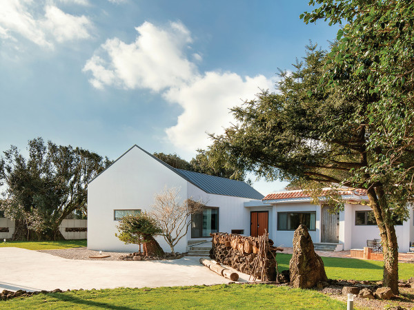 복잡한 서울을 떠나 제주로 왔지만, 시내 아파트에서 생활해야 했던 부부. 자연을 벗 삼은 한적한 땅을 꾸준히 찾아다녔고, 운명적으로 만난 구옥을 고쳐 주말주택으로 쓰곤 했다. 3년 뒤, 그들에게 새로운 결심이 생겼다. 앞으로의 인생은 여기서 보내자고. 취재_ 조성일 | 사진_ 홍석규20년 전, 서울 생활에 피로함을 느끼고 제주로 내려온 남권호, 유은숙 씨 부부. 제주에 이주 붐이 일기 전이라 당시 주변의 만류가 끊이지 않았다. “아이 교육은 어떻게 할 거냐, 왜 시골로 가느냐 이해 못 하는 사람들이 많았어요. 지금요? 저희의 선택이 탁월했다며 다들 부러워하죠.”제주에 왔어도 아이 학교 등 여러 가지 상황이 얽혀 있어 당장 유유자적한 전원생활을 영위할 순 없었다. 다만, 낮은 밀도의 사람과 건물, 언제든 산과 바다를 보러 갈 수 있는 환경은 가족의 숨통을 트이게 했다.고즈넉한 제주 중산간 지역의 어느 마을. 제멋대로 높은 건물 없는 낮은 밀도가 긴장을 풀게 만든다. 50년이 넘은 동백나무를 비롯해 대지 안팎의 제법 큰 나무들을 최대한 보존하는 선에서 증축을 진행했다. 구옥 옥상에 서면 멀리 오름과 한라산이 눈에 담긴다.아이가 크는 만큼 주택살이에 대한 부부의 로망도 점점 커져갔고 2016년 1월, 오래된 동백나무가 담장을 이루는 땅 위 구옥 하나를 마련했다. 약 360평 땅에 자리한 아담한 집은 주말주택으로 쓰기에 부족함이 없었다. 남편 권호 씨는 오랫동안 미뤄두었던 숙제를 받은 사람처럼 기와를 새로 교체하고, 앞마당 데크를 손수 까는 등 정성스레 집을 가꾸어나갔다. 은숙 씨는 남편에게 이런 면모가 있었나 깜짝 놀랐다고.OLD HOUSE오래되었어도 건축주가 정성스레 매만진 덕분에 단정한 자태를 뽐냈던 구옥. 내부에는 단열 공사가 되어 있지 않아 외단열 시스템을 적용했다.독립적인 생활이 가능하도록 별도의 주방을 마련하고 거실과 막힘없이 연결했다. / 침대 놓을 자리인 낮은 평상과 붙박이장을 설치했다. 왼쪽 하얀 문을 열면 화장실이 있다.그리고 3년 뒤, 어느덧 아이는 서울로 대학 진학을 했고, 부부는 스스로에게 새로운 숙제를 부여했다. 이 땅에 여생을 보낼 ‘진짜 집’을 짓기로 결심한 것이다. 구옥을 헐고 새로 지어야하나, 2층을 올려볼까, 별채처럼 한 동을 더 만드는 게 낫나, 고민하고 공부하고 저울질하며 매일 밤을 보냈다.작지만 알찬 거실과 슬라이딩 도어로 연결된 침실이 한눈에 담긴 모습증축부는 마당을 감싸는 형태로 약간 꺾어 배치하고 두 공간이 만나는 지점에 새로이 출입구를 내었다.실내로 들어서면 커다란 창을 통해 뒷마당이 보여 답답하지 않다. 중문을 열어 부부의 공간으로 들어간다.그때 구원자처럼 나타난 사람이 바로 스타시스 최광호 이사다.“주변과의 조화를 고려할 때, 단층을 유지하는 수평 증축이 더 어울릴 거라 생각했어요. 건축주분들이 매만진 흔적과 공간이 가진 기운이 좋았거든요.”여기에 제주에서 활동하는 일상작업실이 설계에 합류해 본격적인 증축 계획에 착수했다. 가끔 오더라도 아들이 독립적으로 생활할 수 있도록 구옥을 리모델링하고 부부를 위한 공간은 새롭게 꾸몄다. 욕실 딸린 방, 거실 겸 주방, 세탁실을 하나씩 갖춘 소박하고 실용적인 구성이다.NEW HOUSE새로 지은 증축부의 남서측 모습. 기존에 있던 울창한 나무가 건물에 그림자를 드리우고 있다.남편이 직접 파종한 서양잔디는 겨울에도 푸르름을 뽐낸다.집은 구옥과 증축부가 마당을 포근하게 감싸듯 ‘ㄱ’자로 배치했다. 지붕에 쓰인 스페니쉬 기와와 연회색 알루미늄 강판이 과거와 현재, 클래식과 모던, 곡선과 직선을 상징하며 조화를 이루는 모양새다.집을 다 지은 후 남편은 시키지도 않았는데 해외 직구한 차량 게이트를 직접 설치하거나, 서양잔디 씨앗을 구해 파종하는 등 집을 가꾸느라 여전히 분주하다. 아내는 복도를 거닐고 데크에 앉아 책 읽는 시간이 즐겁다. 집을 통해 부부는 본인이 좋아하는지조차 몰랐던 것을 새로이 알아가는 재미에 푹 빠져 있다.긴 복도를 따라 들어오면 높은 층고의 거실 겸 주방이 시선을 사로잡는다. 건물에 면한 널찍한 콘크리트 데크는 실내와 연계해 다양한 외부 활동을 가능케 한다.HOUSE PLAN대지위치 제주특별자치도 제주시 | 대지면적 1,207㎡(365.11평) | 건물규모 1층 | 거주인원 3명(부부 + 자녀 1) | 건축면적 165.16㎡(49.96평) | 연면적 160.72㎡(48.61평) | 건폐율 13.68% | 용적률 13.31% | 주차대수 1대 | 최고높이 5.5m | 구조 기초 - 철근콘크리트 줄기초 / 지상 – 철큰콘크리트 | 단열재 비드법단열재 2종1호 70mm | 외부마감재 인덱스 그래뉼 도장 | 담장재 철근콘크리트 + 현무암 자연석 담장 | 창호재 ㈜이플러스윈도우 독일식 알루미늄 시스템창호 | 내부마감재 벽, 천장 - 제비스코 광텍스 반광 / 바닥 – 구정마루 강마루 | 욕실 및 주방 타일 윤현상재 도기질 타일, 테라조 타일 | 수전 등 욕실기기 아메리칸스탠다드 등 | 주방 가구 한샘 유로, 현장 제작 가구, 공방 무늬목 가구 | 조명 T5, 제작 벽등, 매입등 | 현관문 빅하우스 에코우드 125mm 시스템도어 | 중문 현장제작 스틸도어(무늬유리, 모루유리) | 방문 제작 합판도어 | 붙박이장 현