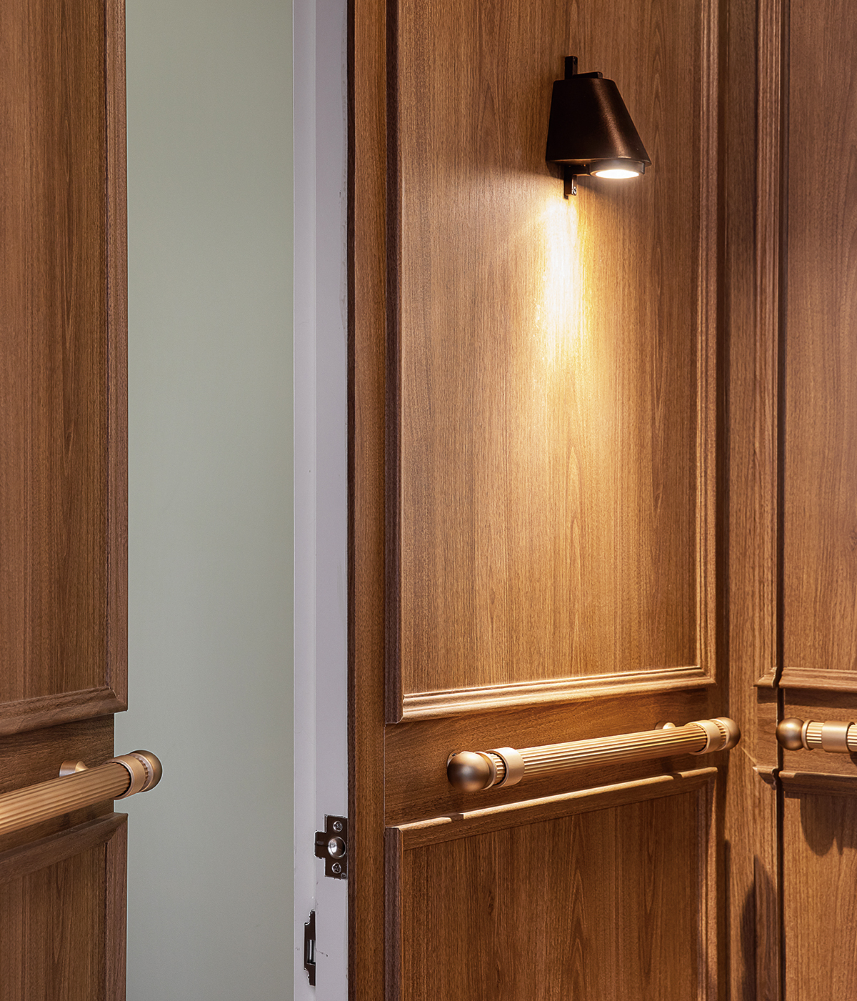DETAIL_출입구 왼편은 히든 도어로 열리는 직원용 출입구. 손님과의 동선 분리를 위트 있는 인테리어로 승화시킨 아이디어가 돋보인다.