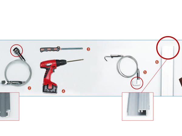 와이어 액자걸이는 벽에 액자를 바꿔 걸 때마다 새로 못질을 할 필요가 없고 액자 크기에 따라 위치를 자유자재로 조정할 수 있어 편리하다. 요즘에는 시공 시 마이너스 몰딩으로 계획해 그 안에 레일을 숨겨 아예 깔끔한 벽면을 만드는 경우도 많다. 취재 이세정 사진 변종석 준비물 1. 천장용 레일 : 알루미늄 소재의 천장용 레일은 일반적으로 본연의 실버, 흰색, 흑갈색 3종류로 판매되고 있다. 대개 50㎝ 단위로 판매하고 있으며, 미리 설치할 부위의 길이를 재어 재단을 요청하는 것이 편하다. 몇몇 온라인쇼핑몰에서는 나사못을 박을 구멍도 미리 타공해 보내주기도 한다. 천장용 레일은 벽면에 사용해도 되지만, 적용할 레일 고리의 모양이 다르기 때문에 설치 전에 위치를 꼭 확인하고 구입한다. 2. 천장용 레일고리 : 천장용 레일고리는 윗고리의 볼트 부위(동그라미 부분)를 잡아당기면 꼭지가 돌아가게 만들어져 있다. 아랫고리의 볼트를 만져 와이어 길이도 조절할 수 있다. 대(大)와 소(小) 2가지 단위로 판매되는데 큰 것은 6㎏, 작은 것은 3㎏ 정도 하중을 견딜 수 있다. 3. 쇠톱(hacksaw) : 금속을 자르는 데 사용하는 톱으로 상황에 맞춰 톱날의 길이를 움직여 쓴다. 여기서는 간단한 작업이라 미니쇠톱으로 작업했다. 4. 무선전동드릴(cordless drill-driver) : 구멍을 뚫거나 비트를 바꿔 나사못을 박는 작업을 동시에 하는 공구로, 전동드릴과 충전드릴로 나눌 수 있다. 액자레일 작업 시에는 레일에 구멍을 뚫고 천장이나 벽체에 나사못으로 고정할 때 사용한다. 5. 벽체용 레일고리 : 7자형 레일고리(동그라미 부분)라 불리는 형태로 벽면 레일에 끼워 사용하는 방식이다. 6. 벽체용 레일 : 위는 얇고 아래는 고리를 걸 수 있는 턱이 나와 있는 제품이다. 7. 나사못(screw) : 몸통에 나사 모양의 굴곡이 나 있고 머리는 드라이버로 돌릴 수 있게 되어 있는 고정 장치용 철물이다. 8. 직결나사 : 나사의 끝부위가 드릴날 또는 뾰족끝 형태로 되어 있어 별도의 가공 없이 직접 설치재에 구멍을 뚫는다. 끝을 자세히 보면 날이 서 있다. 9. 사포(Sand paper) : 레일을 절단하거나 구멍을 내면 금속의 거친 면이 나온다. 이를 연마하기 위해 사용하는 것으로 숫자가 클수록 면이 거칠다. 여기선 220방(CW : 1X1㎝ 안의 모래의 수)을 사용한다. - 천장용 레일 설치하기 01 직결나사로 구멍 뚫기 : 나사못 박을 위치를 타공하기 위해 레일 폭의 정 가운데에 직결나사를 놓고 전동드라이버로 구멍을 뚫어준다. 02 레일 뒷면 연마하기 : 레일 양쪽 끝에 구멍을 뚫고 50㎝에 한 개 정도 간격으로 연이어 뚫는다. 작업이 끝나고 레일 뒷면을 보면 구멍 주변으로 찌꺼기 등이 붙어 있을 수 있으니 사포로 자연스럽게 연마한다. 03 천장용 레일 부착하기 : 뚫린 구멍에 나사못을 끼우고 전동드라이버로 돌려 고정한다. 천장면 안쪽에 레일을 매입할 수 있는 커튼박스나 마이너스몰딩의 틈 안으로 넣으면 깨끗하고, 사진과 같이 천장과 벽이 만나는 위치에 설치해도 된다. 04 천장용 레일고리 끼우기 : 볼트를 잡아 당긴 상태에서 레일고리의 머리를 레일 폭에 끼우고 볼트를 돌리면 고정된다. 액자가 떨어질 수 있으니 당겨보아 잘 고정되었는지 확인한다. 05 와이어 길이 조절하기 : 길이 조절 고리는 끝부분의 볼트를 돌려 푼 다음, 원하는 길이만큼 와이어를 조절하고 볼트를 다시 조이면 된다. 06 천장용 레일에 액자걸기 완성 : 와이어 액자 걸이를 이용하면 액자의 크기에 상관없이 자유자재로 좌우와 높낮이 위치를 조정할 수 있다. 무게가 많이 나가는 액자는 두 개의 와이어로 고정하면 한결 부담이 적다. - 벽면용 레일 설치하기 01 벽체용 레일 설치 길이 확인하기 : 레일을 설치 길이에 맞추기 위해 벽면에 미리 대 본다. 연필은 잘 그려지지 않으니 사인펜 등으로 길이를 체크한다. 02 쇠톱으로 자르기 : 쇠톱은 목공톱과 반대로 손잡이쪽 날이 누워야 한다. 밀 때 강하게 힘을 주고 당길 때는 살짝 힘을 빼며 움직인다. 자른 면은 날카로울 수 있으니 사포로 연마한다. 03 벽체용 레일에 나사못 박기 : 턱이 나온 부분을 아래로 해서 벽체에 레일을 대고 나사못을 박는다. 04 벽체용 레일고리 걸기 : 원하는 위치에 7자형 레일고리를 걸어준다. 오른쪽은 이해를 돕기 위해 클로즈업한 사진. 05 와이어 길이 조절하기 : 길이 조절 고리는 끝 부분의 볼트를 돌려 푼 다음, 원하는 길이만큼 와이어를 조절하고 볼트를 다시 조여주면 된다. 06 벽체용 레일에 액자걸기 완성 : 레일고리의 와이어 길이를 조절한 후 걸이에 액자를 건다.TIP _ 천장부착형 원뿔형 걸이 레일 없이 간단하게 액자를 걸 때는 원뿔형 걸이를 사용할 수 있다. 단, 하중이 3㎏ 이상 나가는 액자는 두 개의 와이어를 사용하는 등 신중을 기해야 한다. 제품 구입 시 지지할 수 있는 하중 정도가 표기되어 있지만, 고정면에 따라 차이가 있으니 주의해야 한다. 01 와이어 머리 고정하기 와이어 머리의 하단을 돌리면 분리된다. 상부 꼭지(동그라미)를 원하는 위치에 대고 나사못을 삽입해 드라이버로 박는다. 02 레일고리 연결하기 돌려서 분리한 나사형 볼트만 조이면 와이어가 연결되고, 여기에 길이를 조절해서 액자