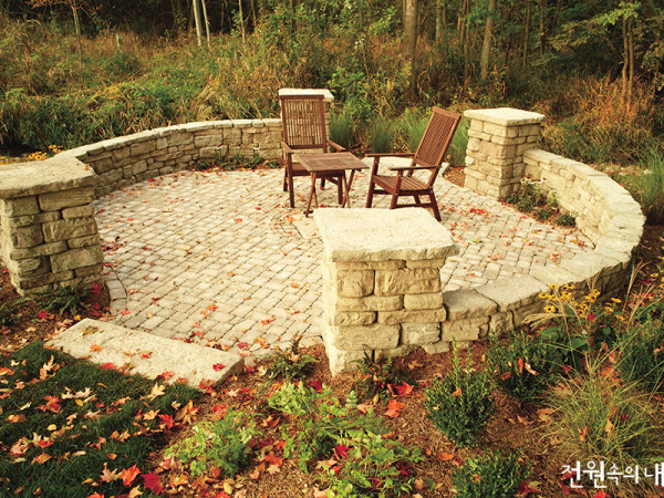 석축이나 콘크리트 옹벽, 잔디 마당 일색의 정원들이 바뀌고 있다. 블록을 이용해 옹벽을 쌓고 화단의 경계석을 만들고 바닥을 포장하는 집들이 늘면서 단순히 보기 좋은 정원이 아닌, 활용도가 높고 관리는 쉬운 정원이 인기를 끌고 있다. 기성품 블록으로 가족의 취향을 고려해 레고처럼 만들어 보는 정원 아이템들을 만나보자. 취재 이세정 자료협조 ㈜이노블록정원은 더 이상 건축물의 배경이 아니다. 집의 완성도를 결정짓는 중요한 요소이자, 거주자의 생활 반경을 외부로 확장하는 필수적인 장치로 진화했다. 덕분에 건축 설계 초기부터 정원 디자인을 적극적으로 고려하는 경우가 늘어났고, 정원용 자재 시장도 가파르게 성장하고 있다.기존의 정원용 자재하면 석축이나 디딤돌, 화단석 등이 전부였지만, 최근에는 자연스러운 질감의 블록 제품들이 인기를 끌고 있다. 콘크리트나 석축 옹벽을 대신하기도 하고, 계단재와 디딤석, 화단석으로도 다양하게 활용되고 있다. 특히 폭포가 있는 연못을 만들 수 있는 키트, 캠프파이어용 키트 등 모듈화된 제품들이 공급되고 있어 소비자들의 선택의 폭을 넓힌다.모듈화된 정원 자재는 건축주가 집의 배치나 외관, 가족의 취향에 맞춰 원하는 대로 조립할 수있는 장점이 있다. 정원 콘셉트를 세우고 그에 맞는 키트들을 레고처럼 조합해 여러 방향으로 디자인하는 식이다. 본인의 가용 금액에 맞춰 키트를 더하고 뺄 수 있으며, 당장 금전적 여유가 없을 땐 해마다 키트를 더해 가족과 함께 마당을 가꿔가는 즐거움도 얻을 수 있다. 기성 제품이기 때문에 전체적인 색과 질감들이 비슷해 이질감이 느껴지지 않는다.모듈 정원용 자재를 기획, 공급하는 ㈜이노블록 기술영업팀 이수성 이사는 “자연석은 톤에 3만원부터 20만원까지 가격대가 천차만별이고 쌓는 사람에 따라 완성도가 다르다. 그러나 모듈에 들어가는 블록 제품들은 품질이 균등하고, 시뮬레이션을 통해 예측한 형태 그대로 조성되는 것이 가장 큰 강점이다”라고 밝혔다.이노블록은 현재 일본의 니꼬(NIKKO), 독일의 고델만(GODELMANN), 미국의 앙카(ANCHOR)와 로제타(ROSETTA) 등 해외 유수의 관련 회사들과 기술 제휴를 통해 블록 제품을 생산한다. 국내 원자재 가공의 자체적인 노하우가 더해져 의장성, 편의성, 내구성을 두루 높였다고 평가받고 있으며, 제품 종류만 2천여 종, 연 매출만도 2백억원이 넘는다.올 하반기에는 일반 주택을 타깃으로 한 맞춤형 정원 원스톱 서비스를 시작해 주목을 받고 있다. 전문가팀이 면적과 콘셉트에 따라 다양한 정원 디자인들을 만들어 제안하고 있으며, 건축주들이 원하면 상담과 설계를 거쳐 그집에 맞는 정원을 디자인해 준다. 아울러 화성에 위치한 본사 전시장뿐 아니라 경남 김해, 인천 봉담, 강원 강릉, 충북 충주, 충남 공주 등 대리점과 연계한 전시장을 만들어 블록을 활용한 다양한 정원 실사례를 선보이고 있다.이 이사는 “가까운 전시장에 방문해 집과 어울리는 블록의 색과 크기를 직접 보고 결정한다면 후회 없는 정원을 조성할 수 있을 것”이라며 “국내 환경에 최적화된 제품을 선보이기 위해 연구 실험, 현장 테스트 등을 꾸준히 시행해 개인 정원용 시장의 새 장을 열 것”이라고 포부를 전했다.경계석이 벤치가 되는 원형 정원자연석 판재 느낌의 바닥 블록과 밸비디어로 쌓은 경계석이 어우러진 원형 정원. 경계석 위에 바로 앉을 수 있어 좁은 정원에서 활용도가 높다. 마당 모서리에 큰 나무를 심고 그 아래 조성하면 더욱 아늑하게 연출된다. 경계석 뒤쪽 주변으로 식재를 하고 안에는 티테이블을 배치해본다. 규격은 4.5×4.5m.아담한 폭포 연못이 있는 정원정원 속의 연못은 공간에 청량감과 입체감을 준다. 폭포 같이 흘러내려오는 물줄기로 아이들이 신나게 물놀이할 수 있는 연못 키트를 적용했다. 정원 규모에 따라 키트는 대, 중, 소로 나뉘고 옹벽으로도 쓸 수 있는 아웃그라핑으로 제작된다. 풍화된 듯한 아름다운 느낌으로 내구성도 높다.가벽이 있는 빈티지 정원풍화된 듯한 벽체를 둥근 형태로 세워 정원 한 켠에 방과 같은 공간을 구성한다. 비정형의 바닥과 거친 느낌의 벽체는 아주 예전부터 있었던 것 같은 느낌을 준다. 거친 느낌의 그라스 식재와 어울린다. 티테이블, 화덕, 낮은 벽체로 구성하면 가든 파티에도 제격이다.벽과 화덕이 있는 어울림의 정원파이어피트는 마당에서 불을 지필 수 있게 별도의 블록을 쌓아 조성하는 아이템이다. 가든 파티 등 정원을 즐길 때, 분위기를 한층 돋울 수 있는 요소이기도 하다. 파이어키트 한쪽으로는 높은 벽체를 세워 프라이빗한 느낌을 줄 수 있고, 낮은 벽체로 빙 둘러 앉을 수 있는 벤치 역할을 하게 디자인할 수도 있다. 자연스러운 색감의 벽체는 정원의 꽃과 식물을 더욱 돋보이게 하는 배경이 되고, 벽체 앞에 벤치를 두면 아늑하고 로맨틱한 공간으로 변신한다. 자투리 공간을 활용한 티타임 정원 좁은 정원의 자투리 공간을 이용해 티타임을 즐길 수 있는 정원이다. 디딤석과 이어진 이 모듈은 크기가 큰 바닥 블록을 사용해 안정적이고 보행감도 좋다. 표면이 평탄하며 테이블과 의자를 두고 써도 불